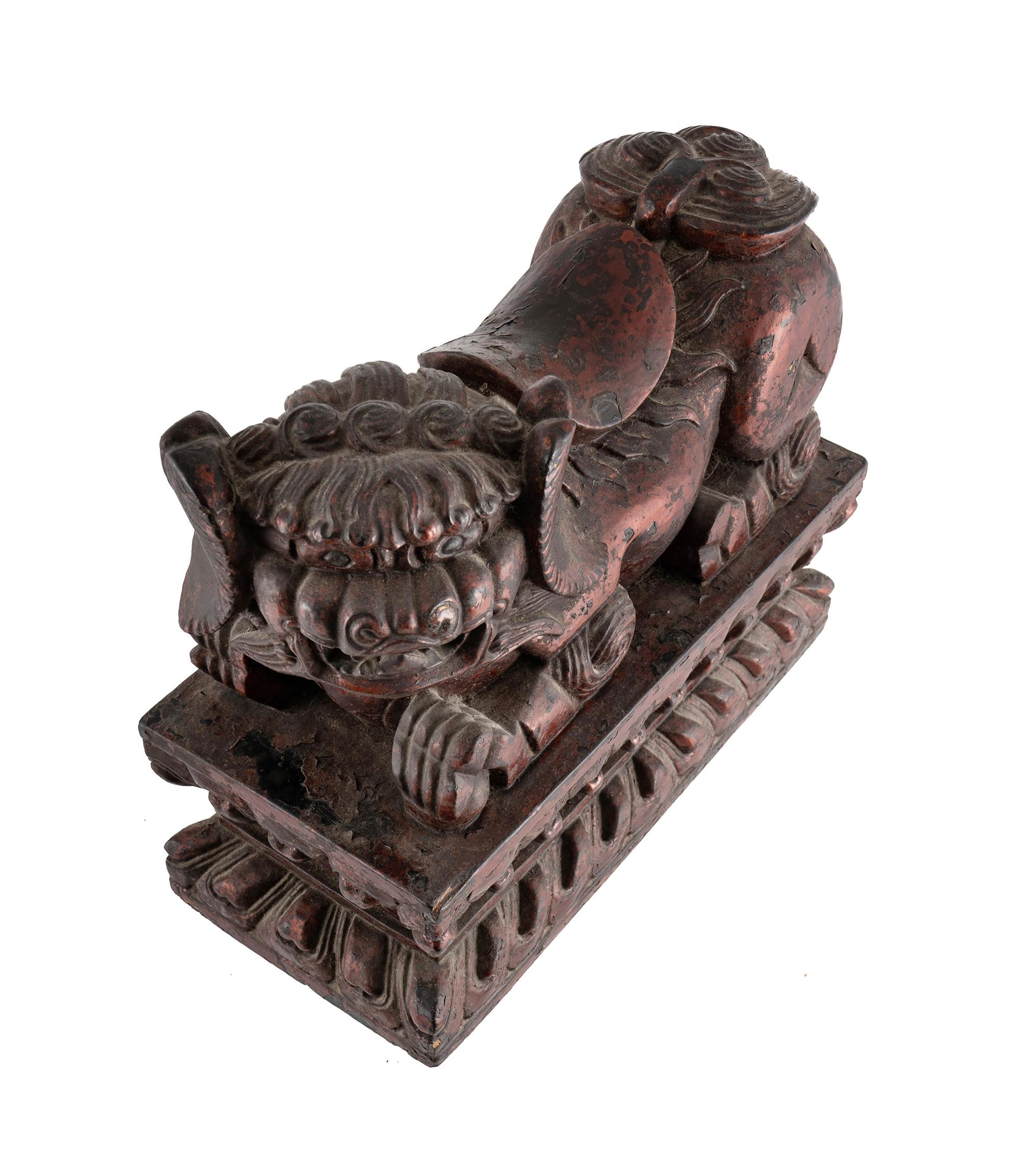 Chinese Carved Wood & Lacquer Temple Lion on Double Lotus Base Ex David Ho Antiques, 19th century H32cm L39cmEstimate $300-400