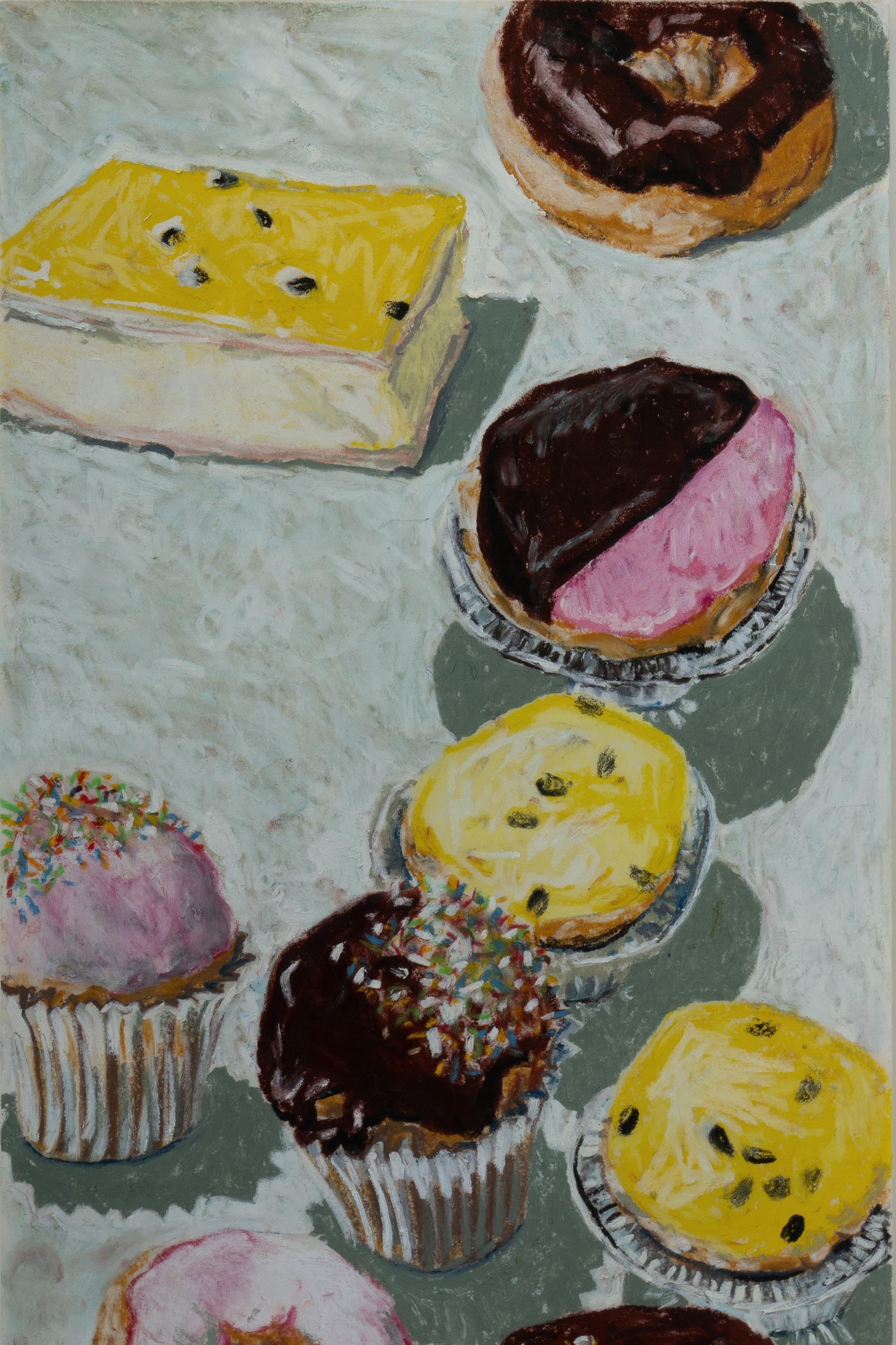 CULLITON, Lucy (b.1966) 'Cupcakes and Doughnuts,' 2000. Ex The Hughes Gallery, Sydney (stock #LC174) Original invoice included. Pastel 90x38cm (sheet)Estimate $1,500-3,000