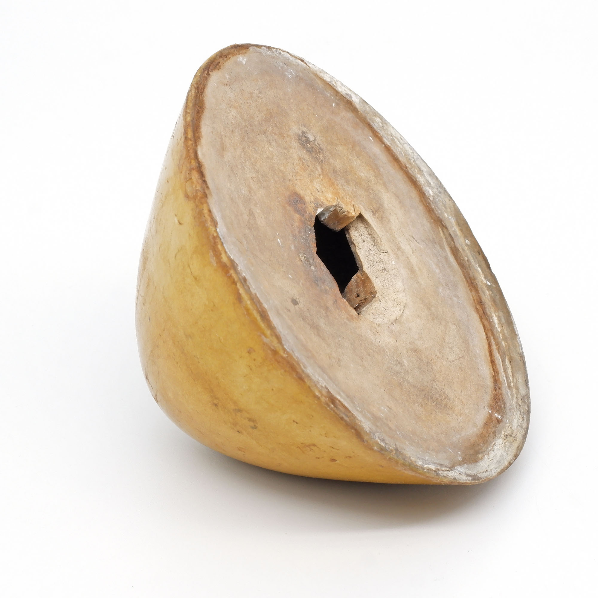 English Aesthetic Movement Slip Decorated Amphora Floor Vase. In brass stand c.1880, in the style of E.W. Godwin and Christopher Dresser. Green, red and yellow colourway. Includes cone shaped base (separated) (H80cm)Estimate $300-600