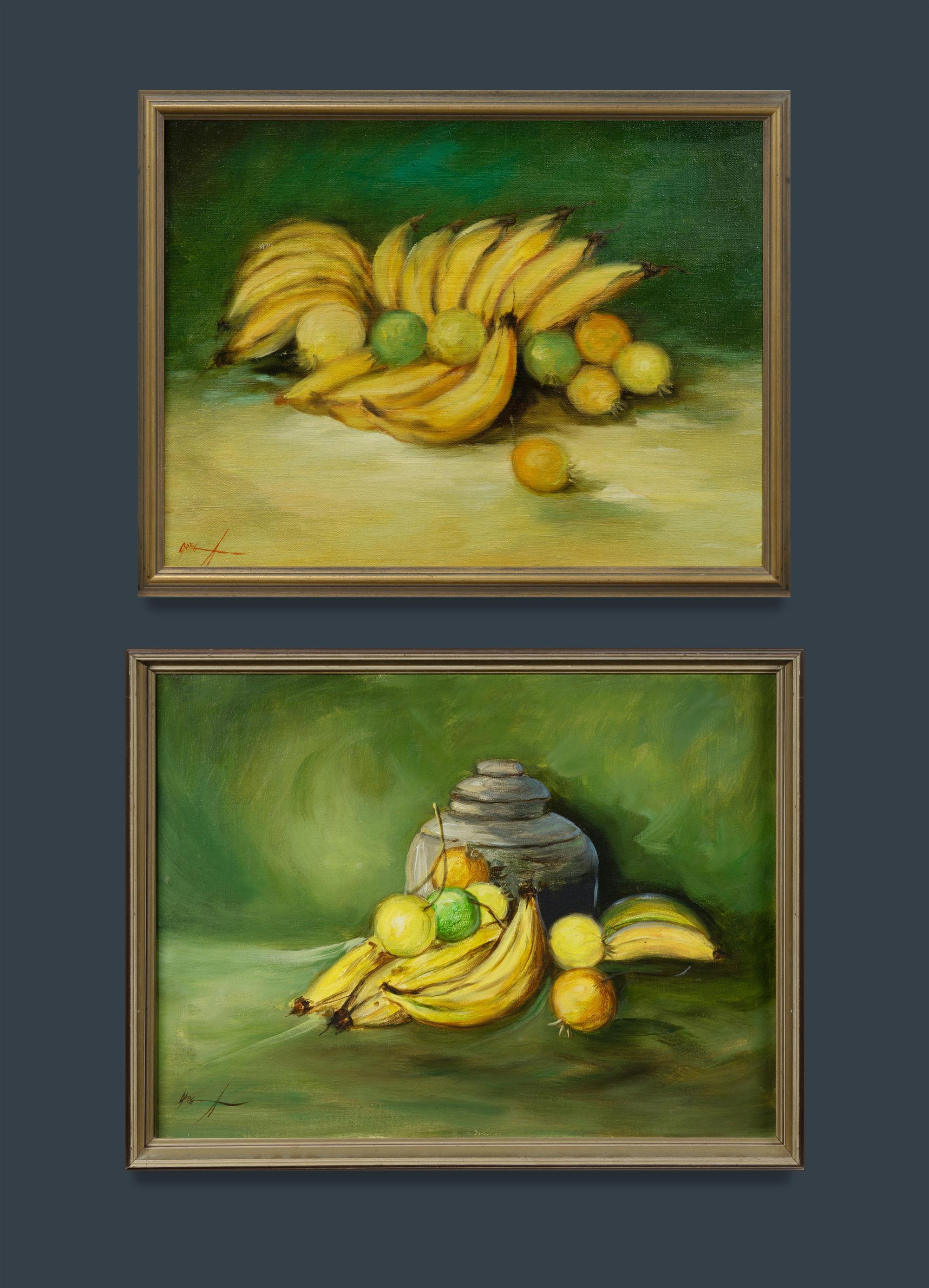 ORTEGA, (3) Forest (59x43.5cm); Bananas with Pot (44x59.5cm); & Bananas and Fruit (42.5x57cm) Oil on Canvas on Board (3) PROVENANCE: Ken Hinds Cultural Heritage Collection.Estimate $100-200