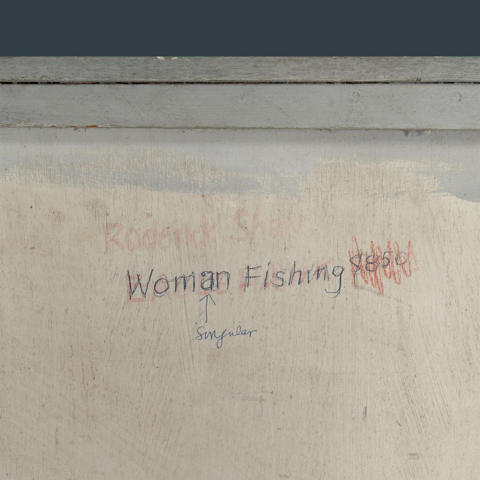 SHAW, Roderick Malcolm (1915-1992) 'Woman Fishing,' 1971. Signed and dated lower right; titled and inscribed verso. Acrylic on Board 92x123cm PROVENANCE: Chrissie Shaw, daughter of the artist.Estimate $300-500