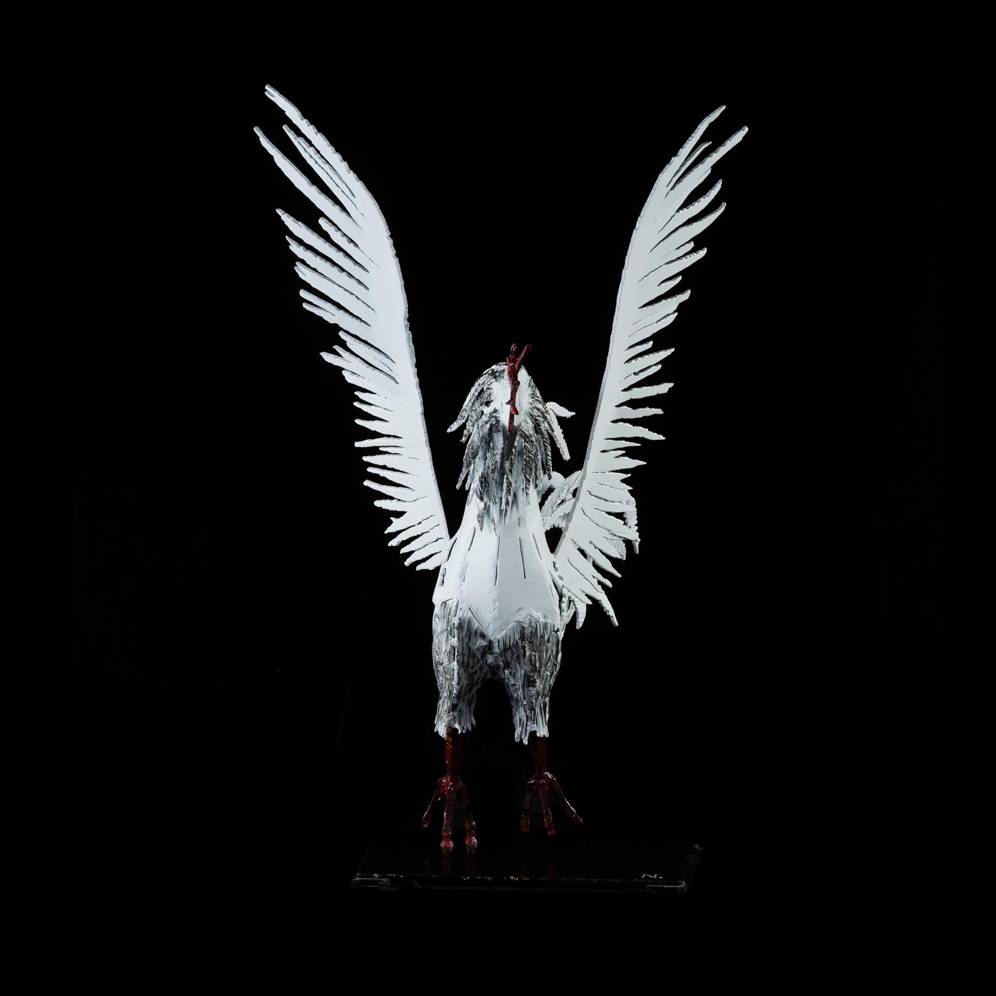 SEFFRIN, Nickolaus (German/Australian b.1931) 'Fighting Cock/Rooster' Initialled 'N' to base. Mild Steel with Powdercoating & Applied Colour 78x38x46cm PROVENANCE: Adrien Seffrin, son of the artist.Estimate $800-1,500