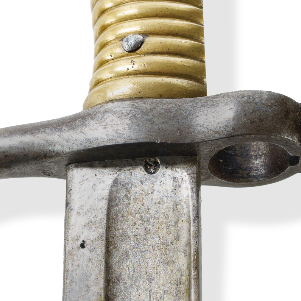 2 French Yatagan Bayonets Brass hilts and steel scabbards, 1871 & 1873. L71cm (each)Estimate $300-500
