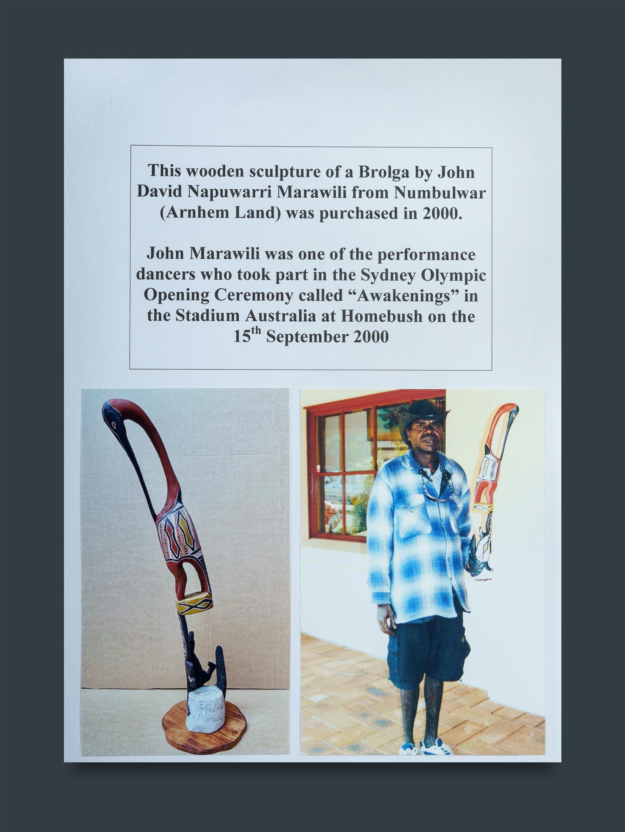 MARAWILI, John David Napuwarri (Aboriginal b.1969) Brolga Signed to base. Acrylic on Wood H77cmEstimate $300-500