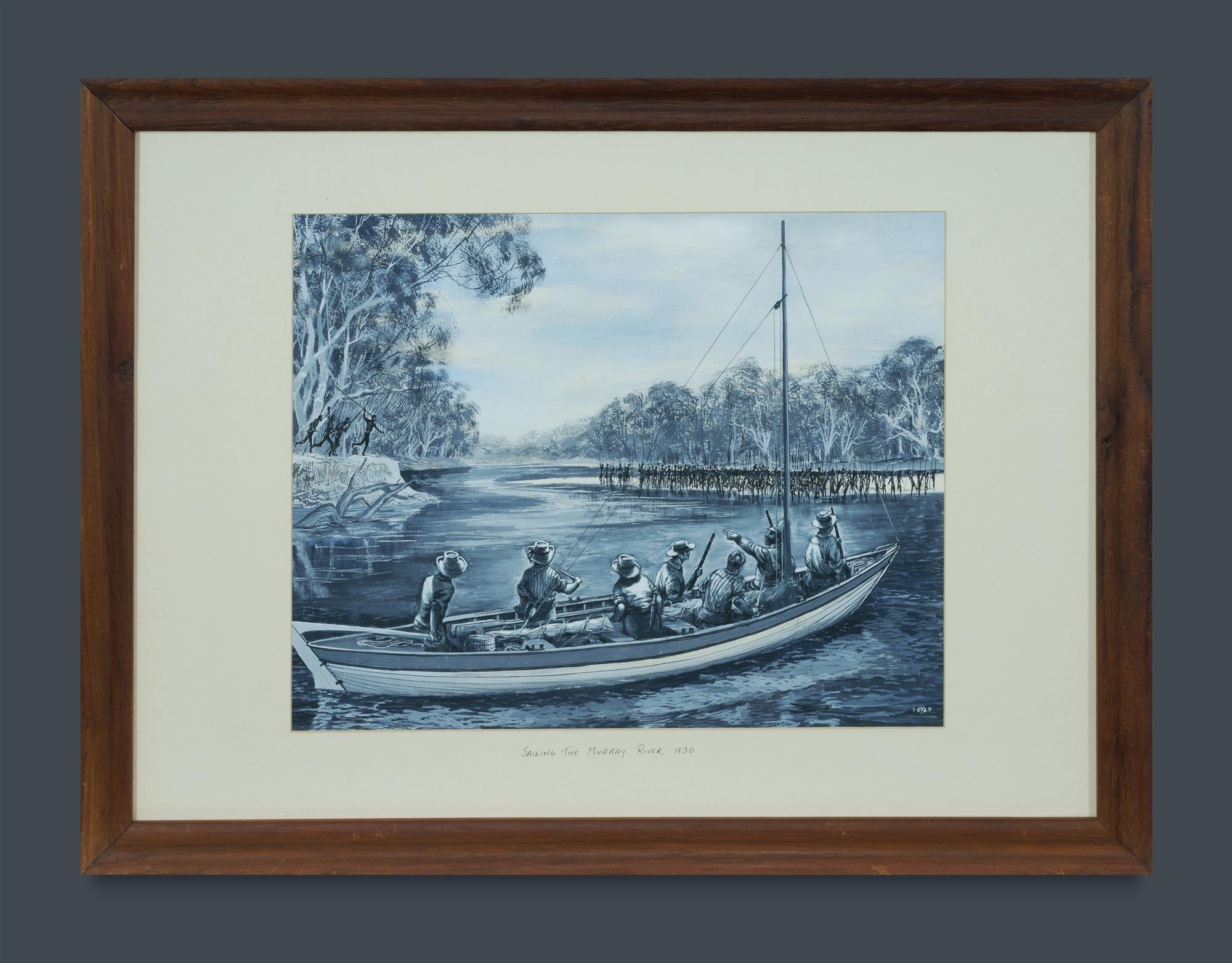 Australian School (2) 'Eureka, 1854' and 'Sailing the Murray River, 1830' Gouache (2) 37x48cm (each) PROVENANCE: The Fred and Elinor Wrobel Collection, Sydney; Estate Late Elinor Wrobel.Estimate $200-300