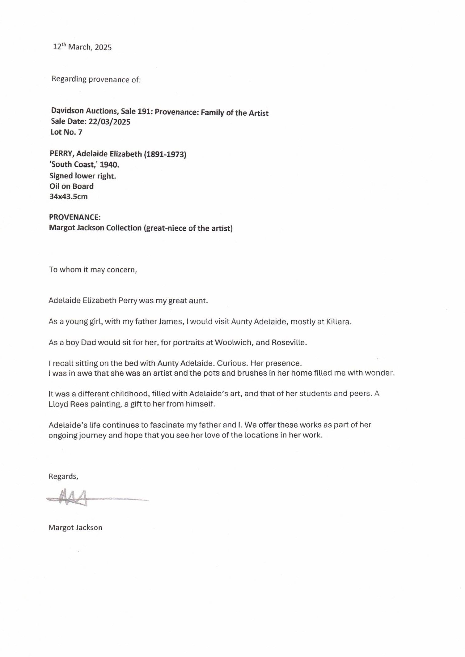PERRY, Adelaide Elizabeth (1891-1973) 'South Coast,' 1940. Signed lower right. Oil on Board 34x43.5cm PROVENANCE: Margot Jackson Collection (great-niece of the artist)Estimate $1,500-2,500