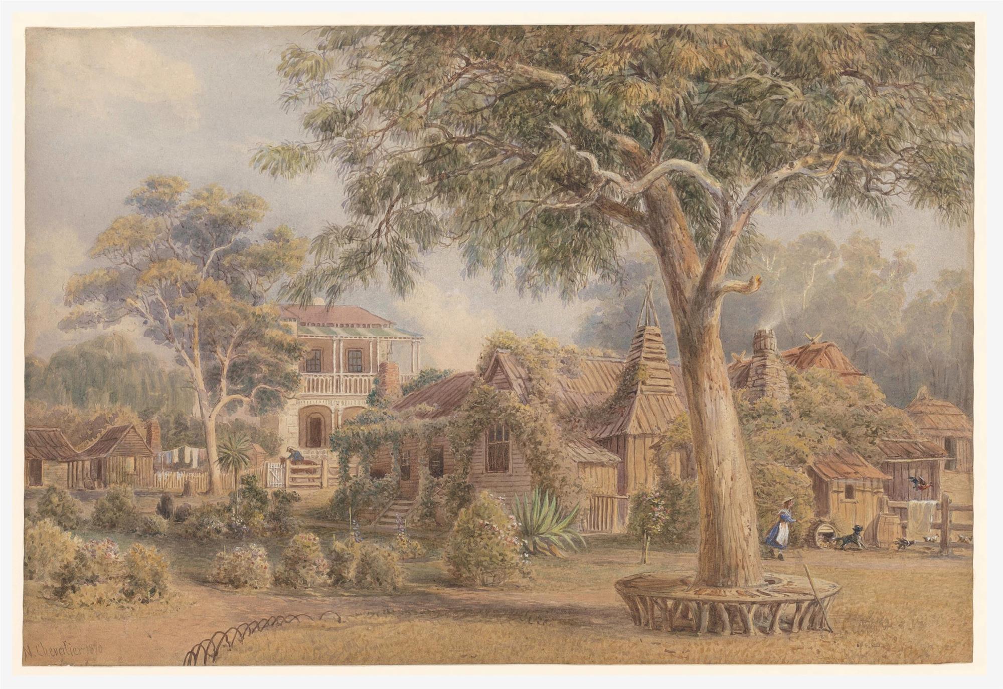 CHEVALIER, Nicholas (1828-1902) Preliminary Sketch for the Old and New Home Stations' Signed lower right. W/Clr & Gouache 24.5x37cmEstimate $700-1,200