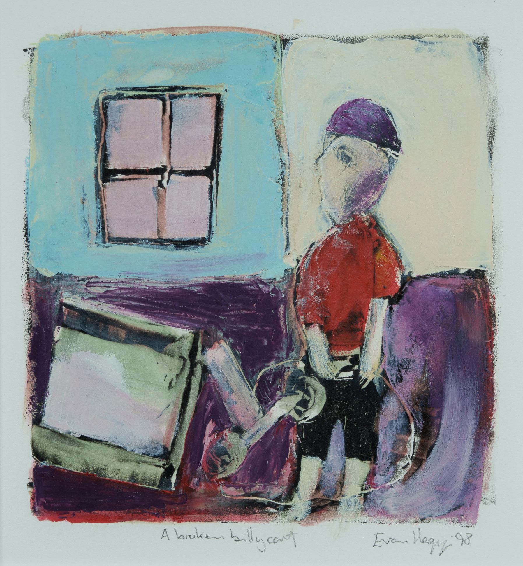 HEGYI, Evan (b.1994) (4) 'The Sun Came Through the Leaves', 'The Princess and Her Prince', 'A Broken Billycart', and 'The Road is Long,' 1998. Each signed lower right. Oil on Paper 14x14cm image (approx)Estimate $200-400