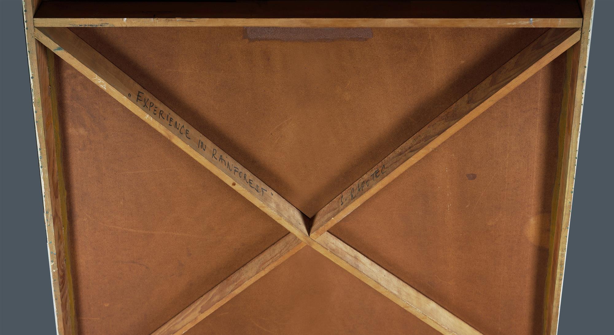 RAPOTEC, Stanislaus (Stan) (1913-1997) 'Experience in Rainforest,' c.1960s. Signed lower centre; also signed and titled verso. Acrylic on Board 183x137cmEstimate $4,000-7,000