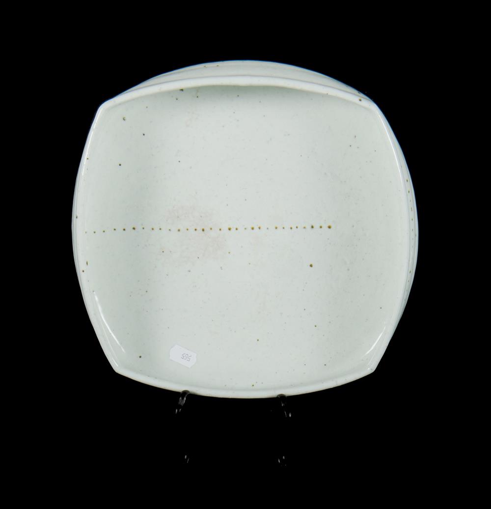 3 Australian Studio Pottery Platters. One with light grey glaze & floral decoration (dia 29cm); one brown glazed & with impressed studio mark (dia 27cm); & one square form with raised sides (25x25cm). Estimate $60-80