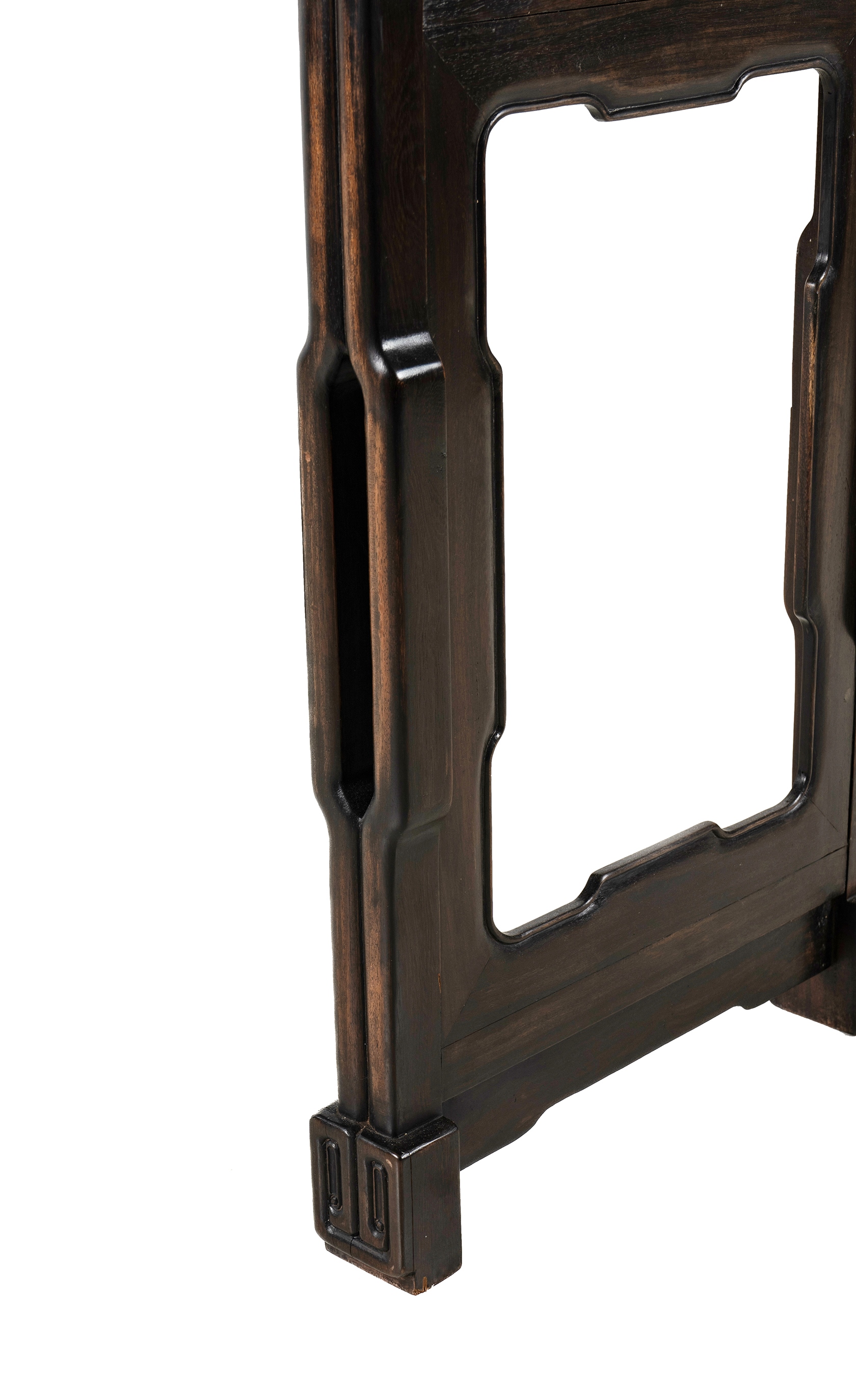 Chinese Rosewood Altar Table. Rectangular top with scroll ends & a pierced apron. Purchased Grafton Galleries, Double Bay. Ex collection of the Australian German Ambassador. H57.5cm L130cm D40cmEstimate $800-1,500