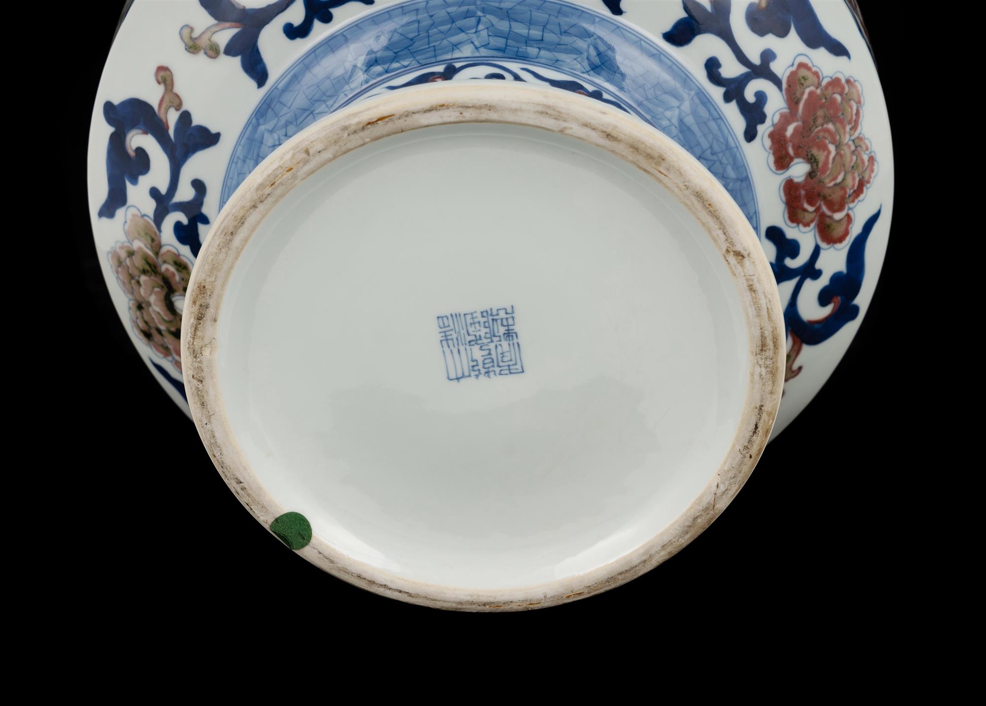 Chinese Blue & White Underglaze Red Vase. Twin handles with rings, decorated with bats, kirin & dragons. Qianlong mark to base. On wooden stand. (H36cm)Estimate $400-600