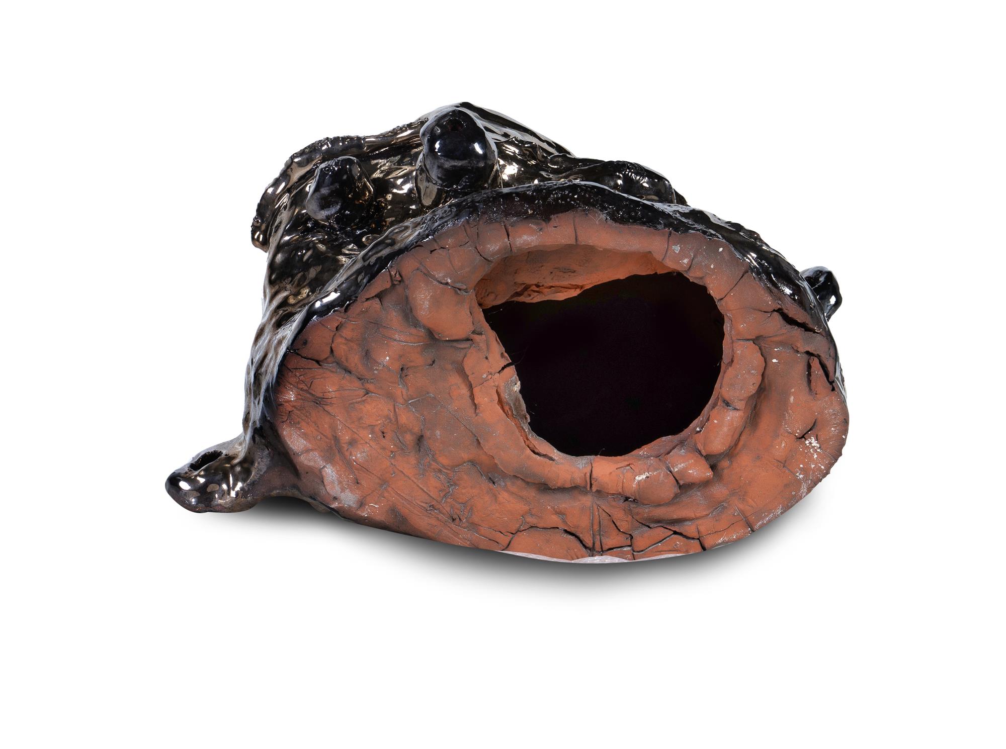 NITHIYENDRAN, Ramesh Mario (b.1988) 'Golden Dickhead,' 2013. Red Terracotta & Glaze H25cm W30cm D28cm PROVENANCE: Private collection, Sydney. EXHIBITIONS: Art Month Speed Dating Finalist Exhibition, Depot Gallery, Sydney, 3rd - 7th September 2013.Estimate $2,000-4,000