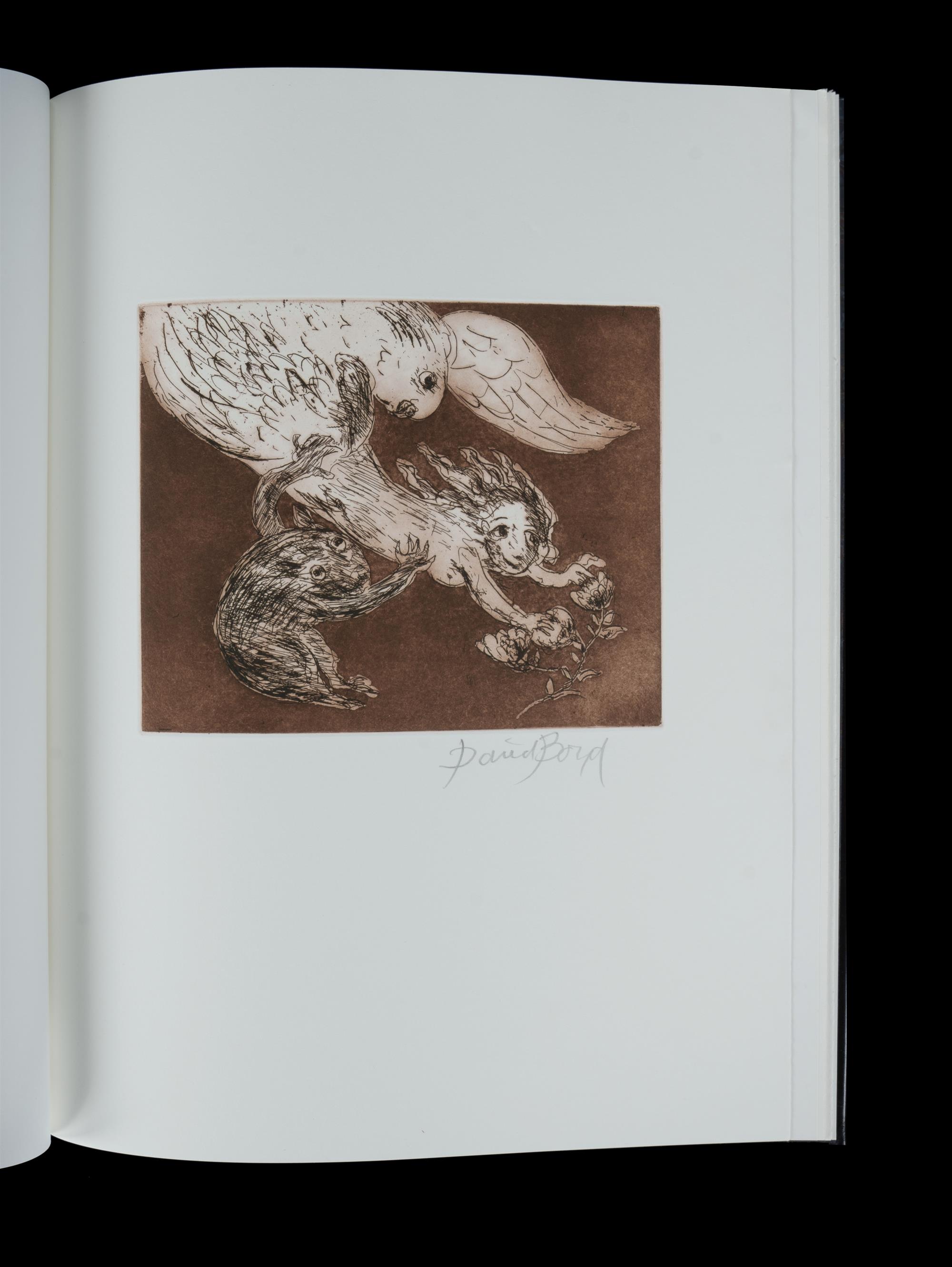 BOYD, David (1924-2011) BOOK, 'Reconciliation - An Australian Odyssey,' 2002. Deluxe version of book containing 23 original etchings, each hand signed in pencil by the artist. The book is bound in black kangaroo leather and housed within a matching slipcase. Note: this proof copy is unnumbered and does not contain the original pencil drawing. The colophon page has been signed by the publisher, Robert Littlewood. (53x40x4.5cm) Estimate $1,500-2,500