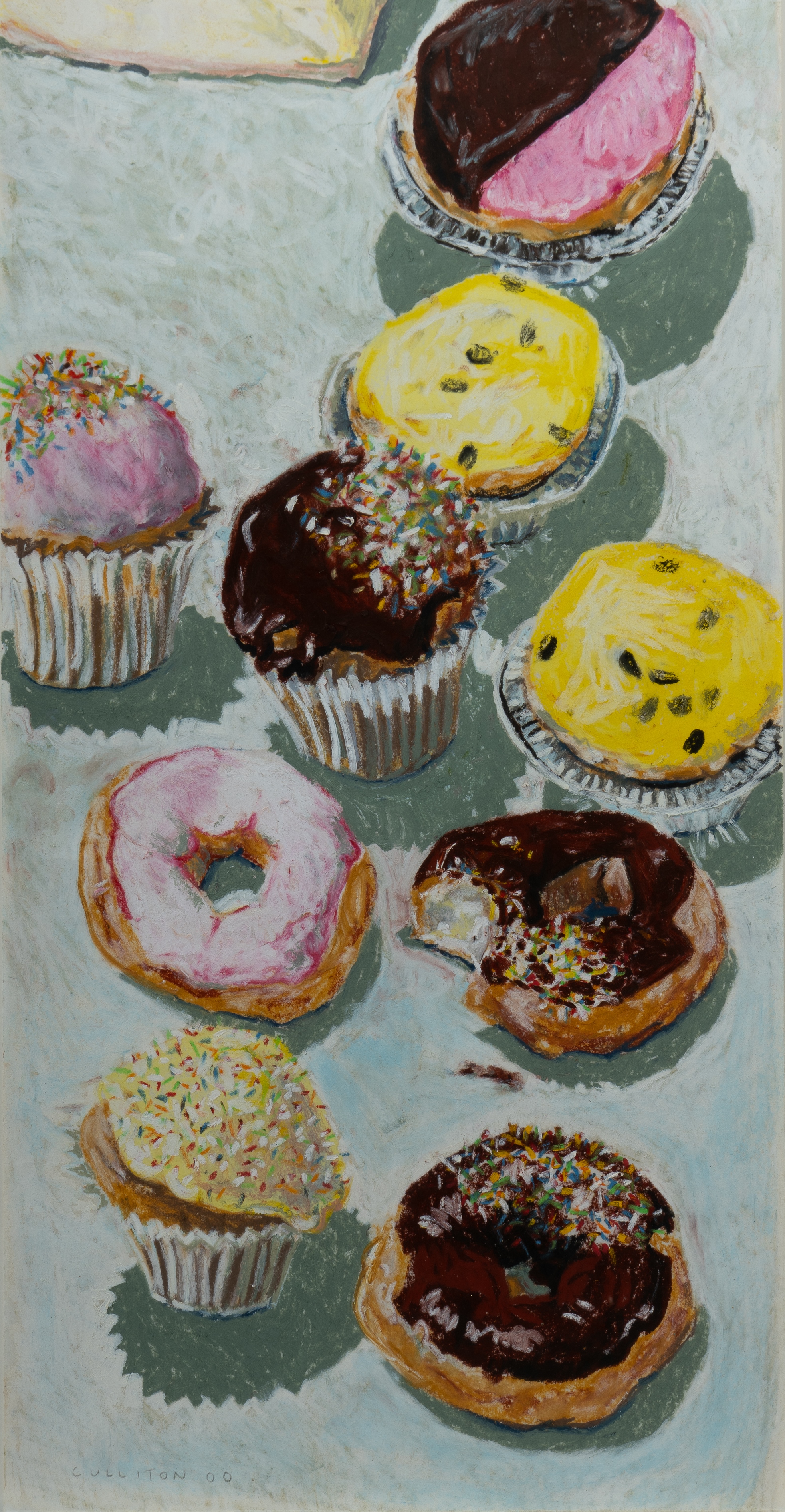 CULLITON, Lucy (b.1966) 'Cupcakes and Doughnuts,' 2000. Ex The Hughes Gallery, Sydney (stock #LC174) Original invoice included. Pastel 90x38cm (sheet)Estimate $1,500-3,000