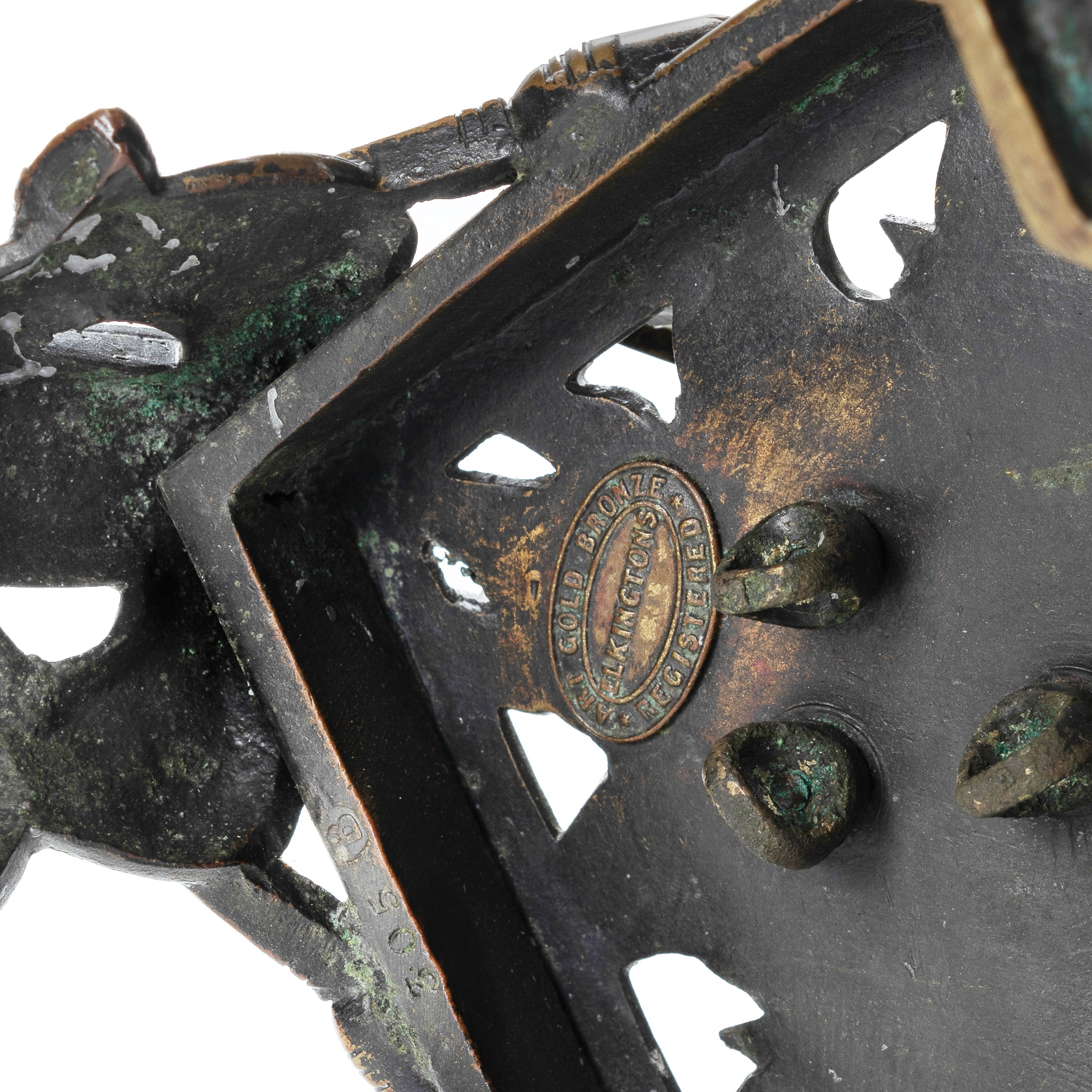 Pr Elkington & Co. Egyptian Revival Style Bronze Candelabra. Late 19th C. (H65cm)Estimate $500-1,500