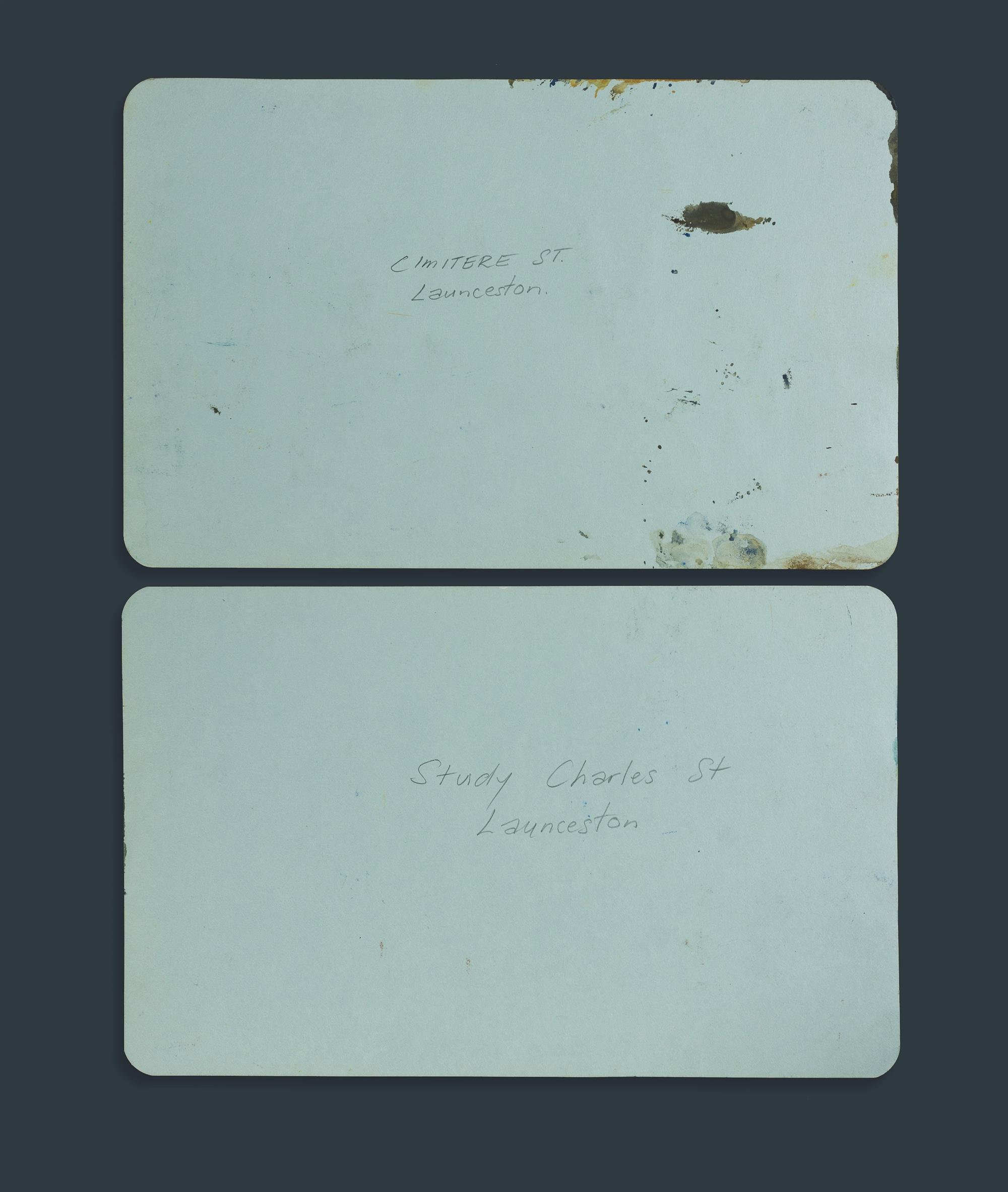 BLANCHARD, Brian (1934-2015), Seven Tasmanian Studies Includes Salamanca Market; Charles St, Launceston; Cimitiere Street, Launceston; Salamanca Place, Hobart; Elphin Street, Launceston; Roadside Trees; and Tree Study. W/Clr (7) 16x26cm each PROVENANCE: Family of the Artist.Estimate $150-300