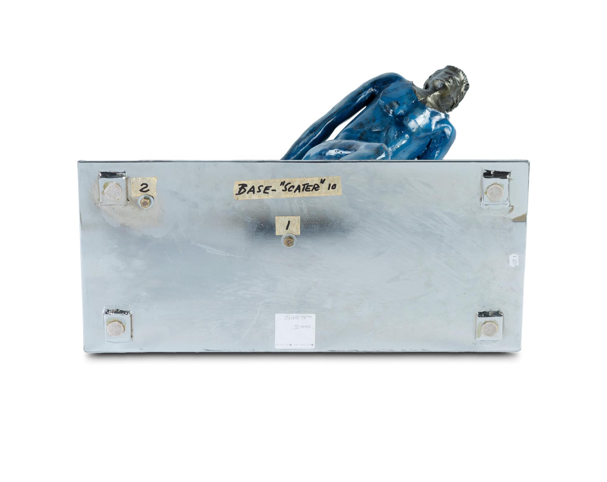 SEFFRIN, Nickolaus (German/Australian b.1931) 'Skater III' Initialled 'N' to base. Australian Galleries, Sydney, label to underside (#AG304170) Mild Steel, Chrome & Applied Blue Finish 59x54x26cm PROVENANCE: Adrien Seffrin, son of the artist.Estimate $1,200-2,500