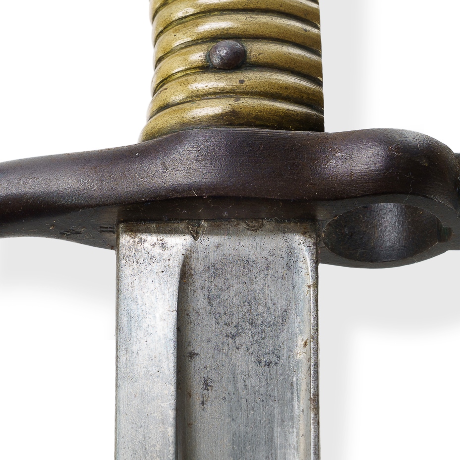 2 French Yatagan Bayonets Brass hilts and steel scabbards, 1871 & 1873. L71cm (each)Estimate $300-500