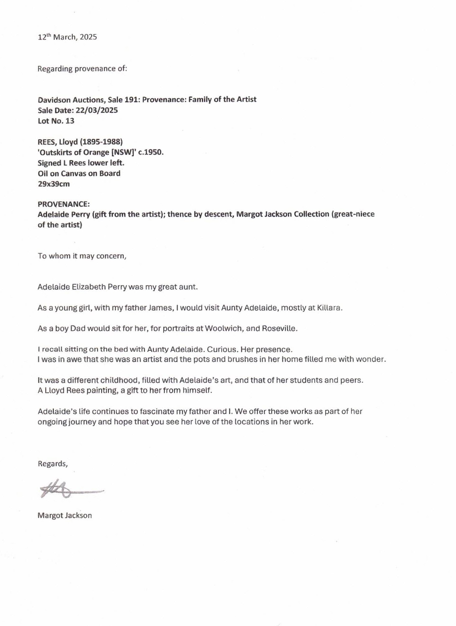 REES, Lloyd (1895-1988) 'Outskirts of Orange [NSW]' c.1950. Signed L Rees lower left. Oil on Canvas on Board 29x39cm PROVENANCE: Adelaide Perry (gift from the artist); thence by descent, Margot Jackson Collection (great-niece of the artist)Estimate $10,000-15,000
