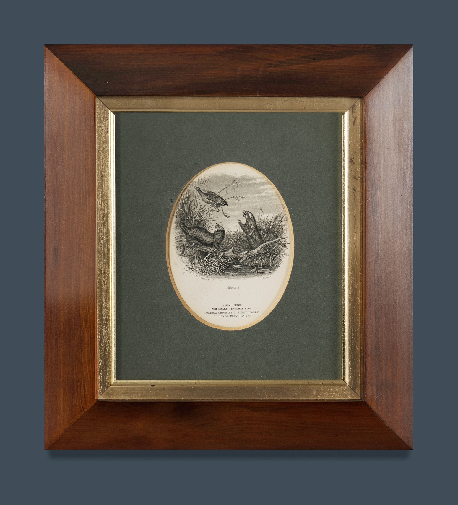 4 Early 19th C Engravings by William Home LIZARS. Butterflies and Lizard (Entomology Vol V); Moths (Entomology Vol VII); Polecats; & Red Grouse. Provenance: private collection, Tasmania. Engraving (4) (3 Hand-coloured) 10.5x8cm (oval, each)Estimate $150-250