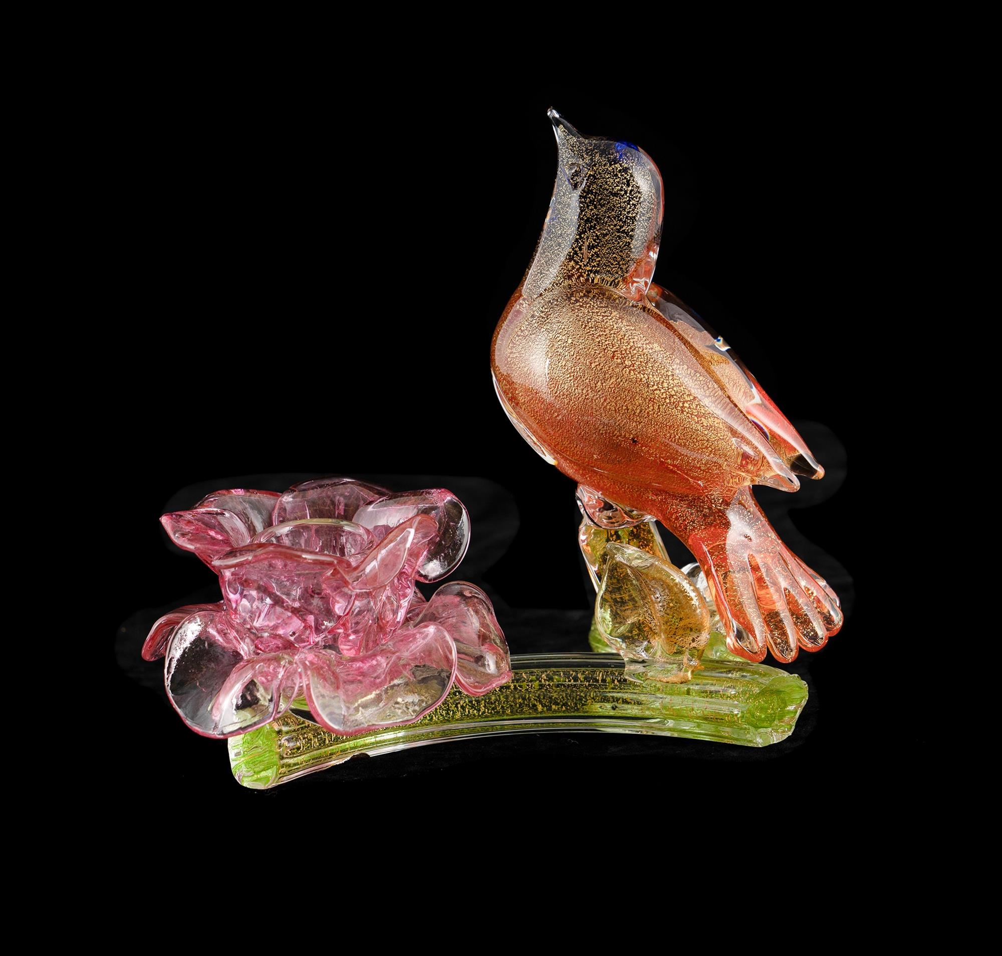Two Murano Glass Items Large clear bubble glass handkerchief bowl; & a bird figure with aventurine. H16cm Dia 22cm (bowl) H14.5cm (bird figure) Provenance: Deceased Estate, Sydney.Estimate $100-150