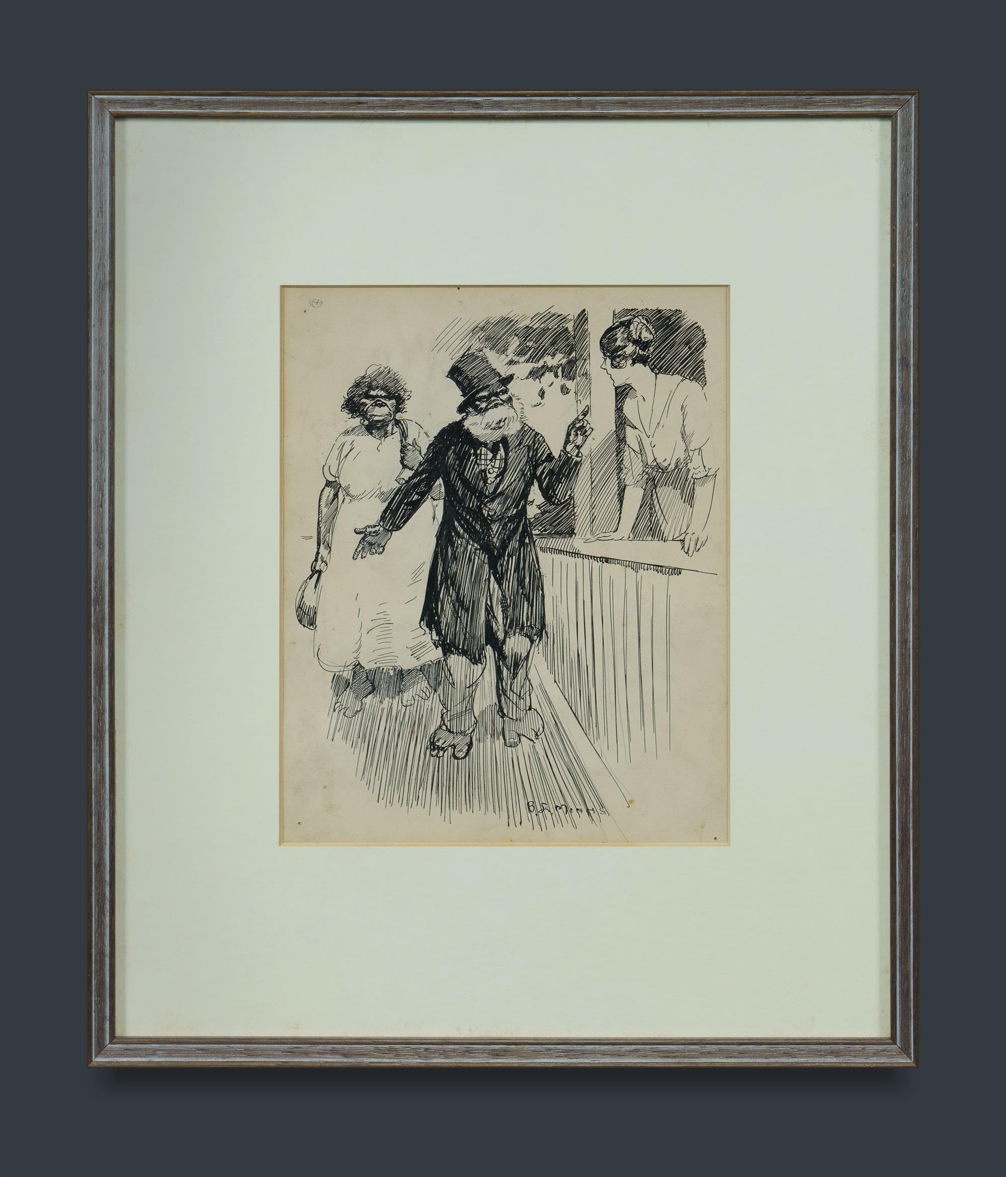 MINNS, Benjamin E (1864-1937) (3) 'The Generous Mistake,' 1904 (23x17cm); 'Woman of Breton' (26.5x14cm); and 'Binghi & Missus' (24x19cm) All signed. Pen, Ink & Wash (3)