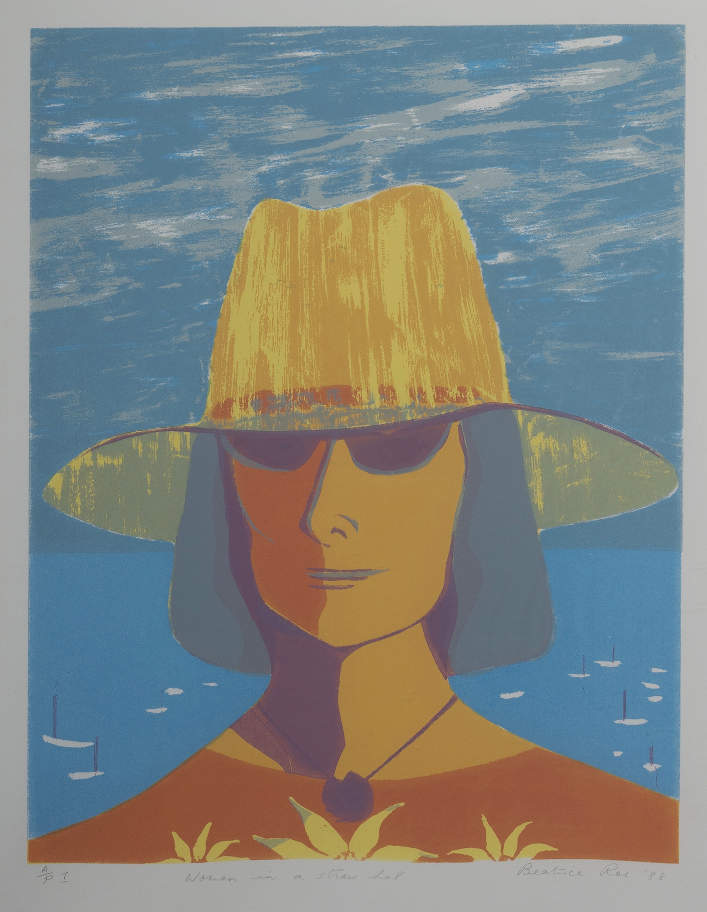 ROE, Beatrice (1920-2019, 4 Various Woodblocks/Screenprints. 'Red Monolith,' 1975, 51x35cm (1/7); 'Woman in a Straw Hat,'1988, 45.5x35.5cm (A/P I); Still-Life with Napkin,' 1987, 7x30cm (1/8); & 'Winter, Wahroonga NSW,' 55.5x35cm (1/8). All measurements image only.Estimate $80-150