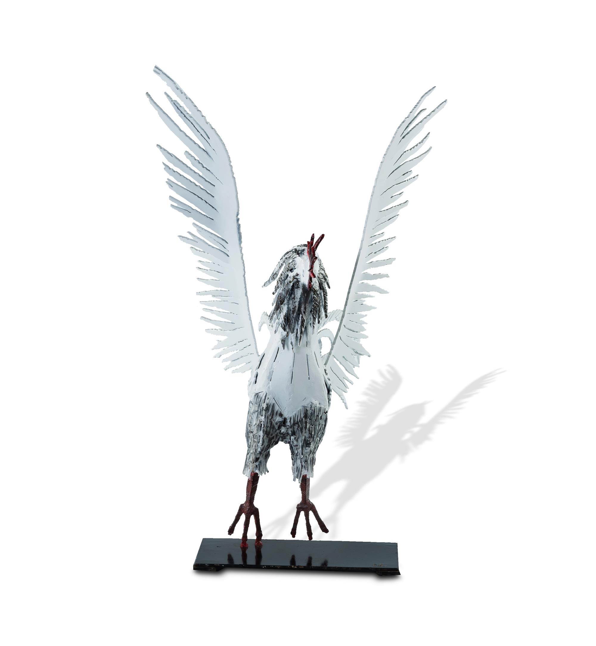 SEFFRIN, Nickolaus (German/Australian b.1931) 'Fighting Cock/Rooster' Initialled 'N' to base. Mild Steel with Powdercoating & Applied Colour 78x38x46cm PROVENANCE: Adrien Seffrin, son of the artist.Estimate $800-1,500