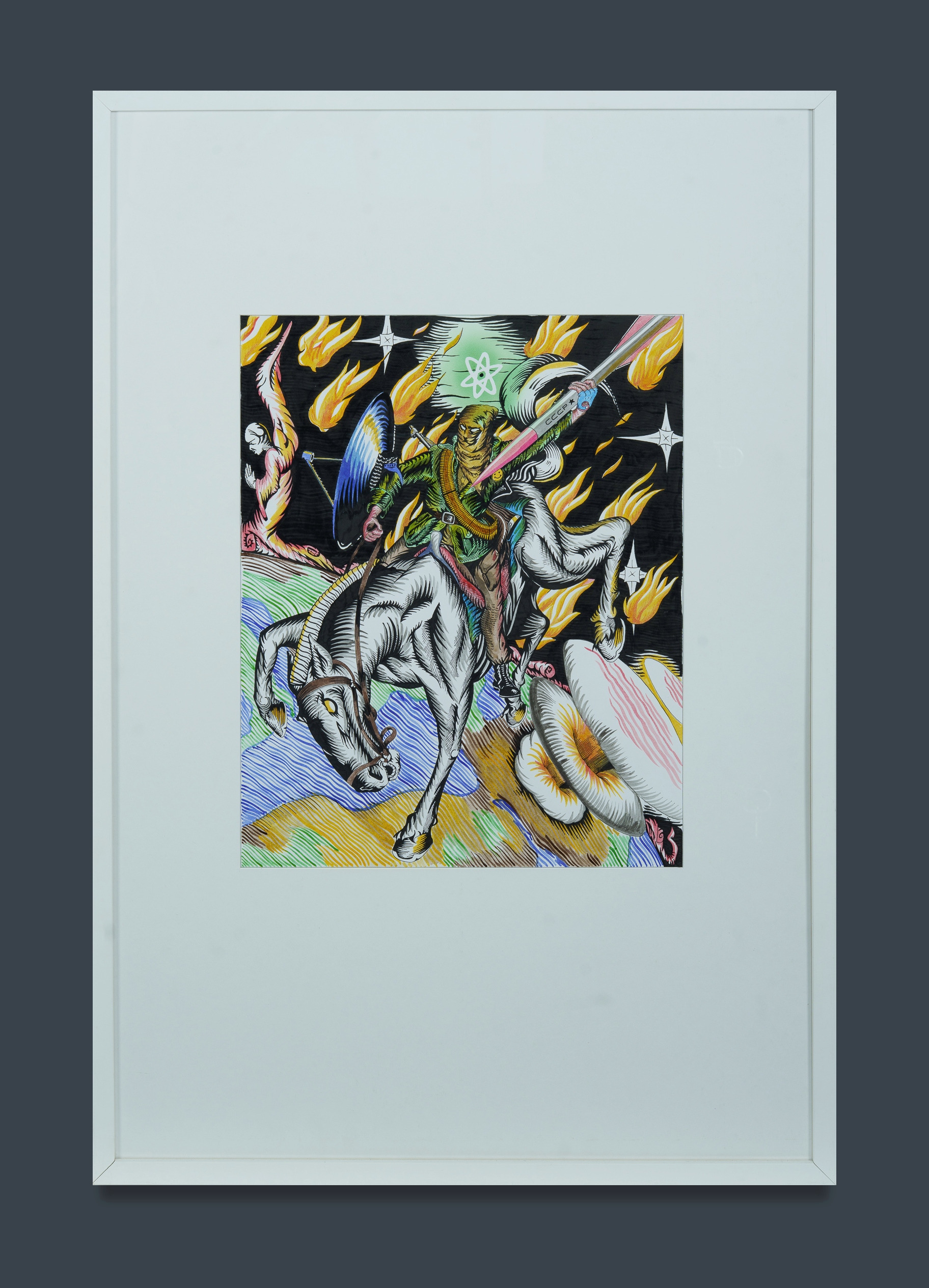 Artist Unknown, Signed 'Giles' (4) Four Horsemen of the Apocalypse - Conquest, War, Famine, Death. One work signed with monogram lower left. Coloured Permanent Marker Pens (4) 51.5x41cm (each)Estimate $400-600