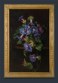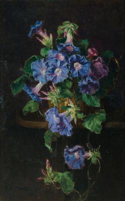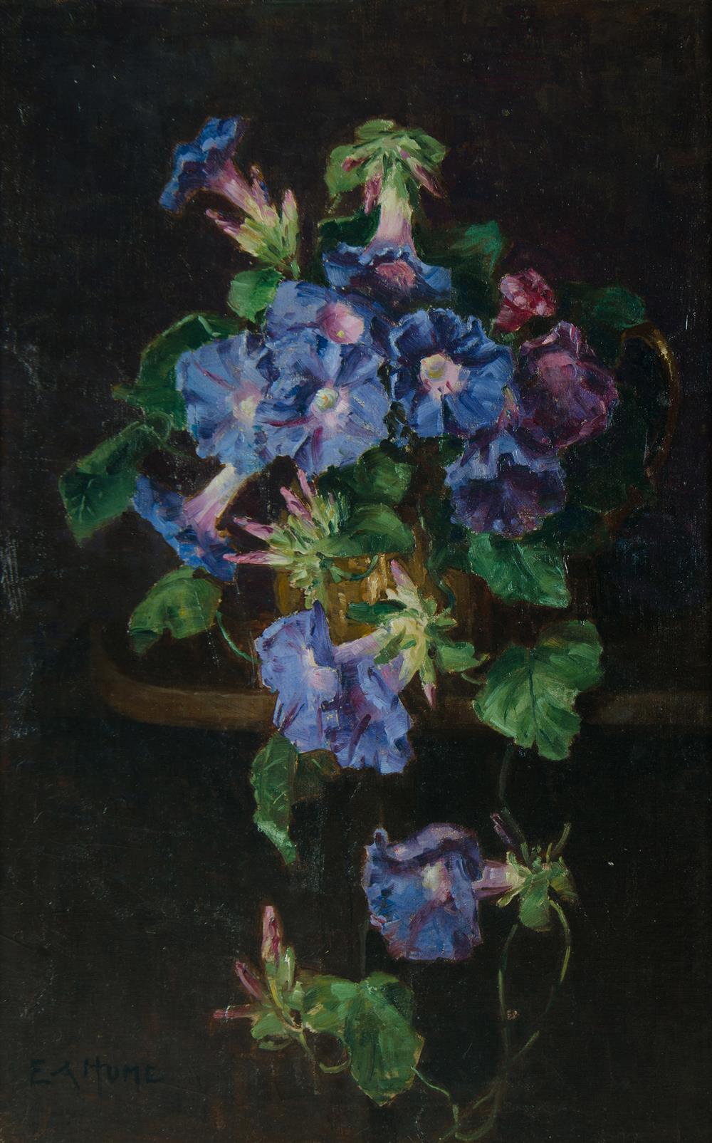HUME, Ellen Adye (1862-1933) 'Morning Glory at Night' Provenance details verso. Provenance: Angeloro family collection. Oil on Canvas on Board 60x38cm Estimate $300-500