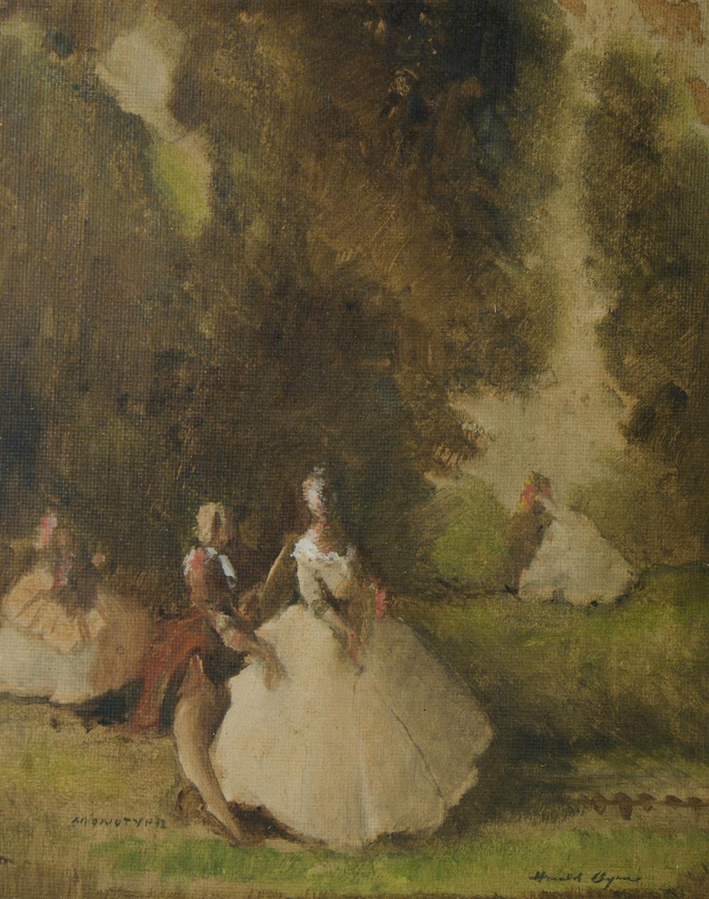 BYRNE, Harold (1899-1966) Garden Party Provenance: Angeloro family collection. Monotype 20.5x17cm Estimate $250-350