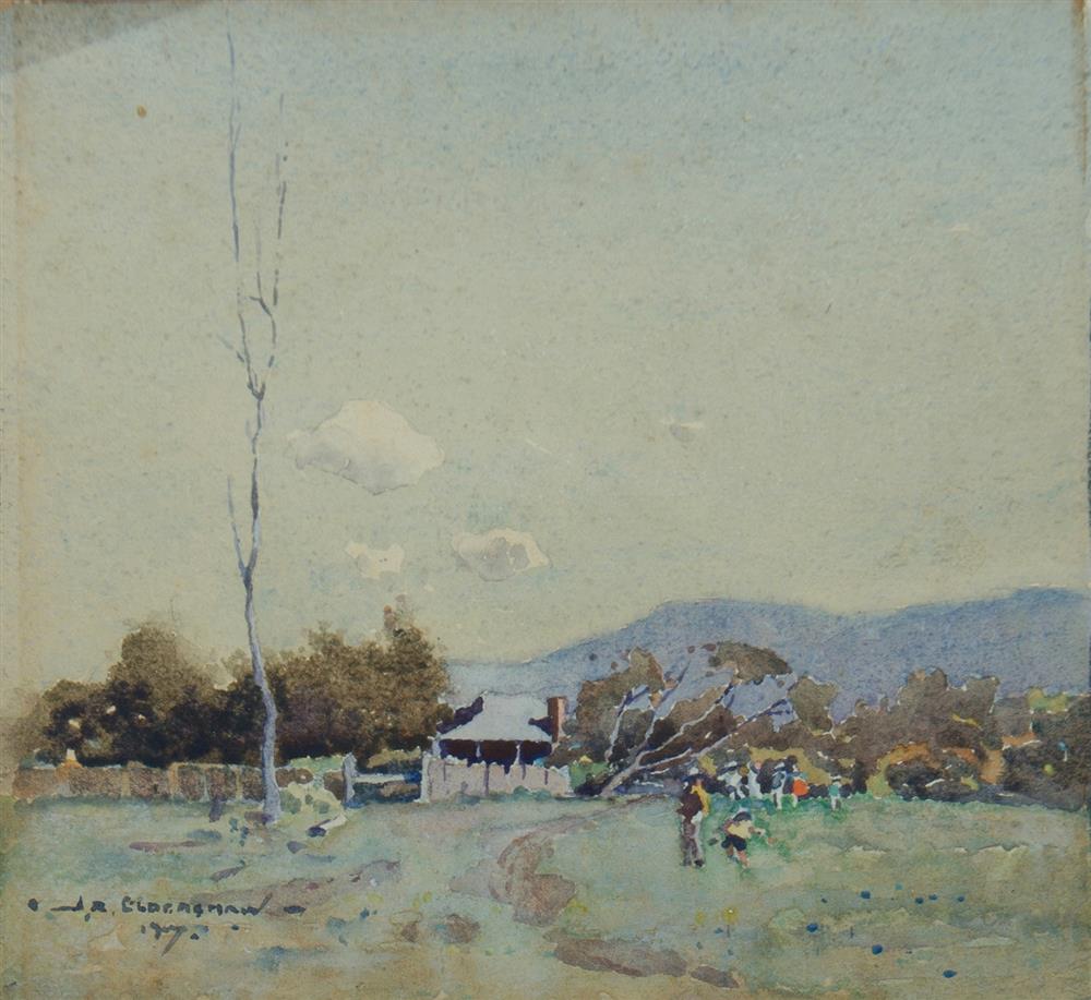 ELDERSHAW, John Roy (1892-1973) Family & Bush Homestead, 1927 Provenance: Angeloro family collection. W/Clr 20x21.5cm Estimate $70-120