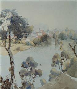 MacNALLY, Matthew James (1873-1943) River Scene, possibly the Yarra Provenance: Angeloro family collection. W/Clr 26x22.5cm Estimate $80-150