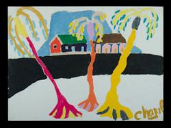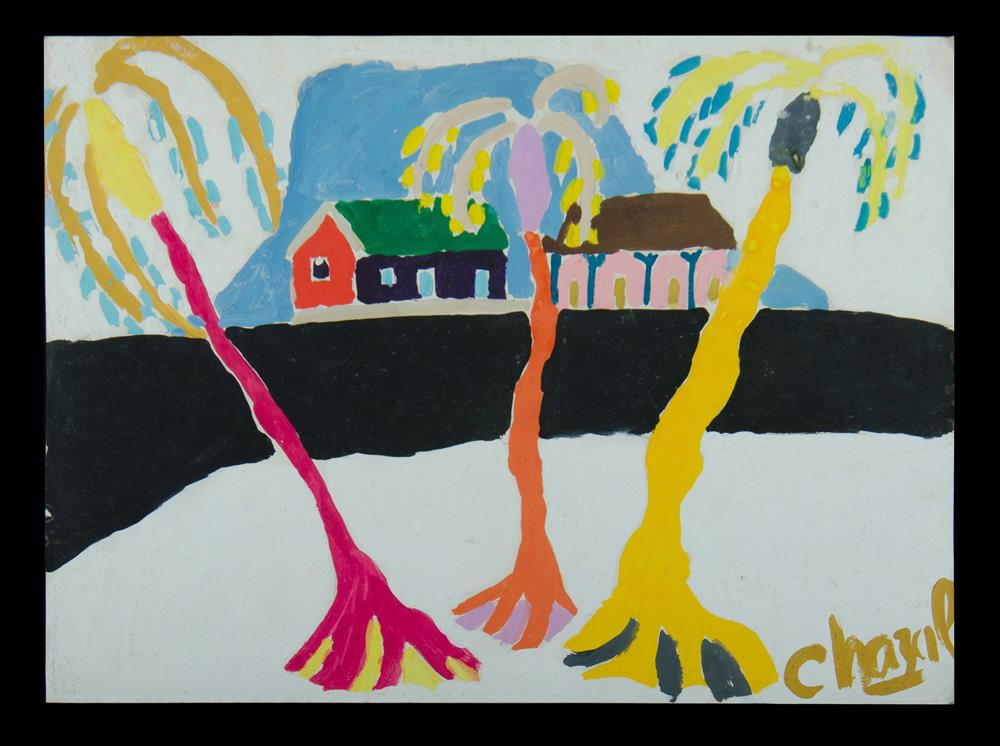 DE CHAZAL, Malcolm (Mauritius 1902-1981) Untitled (Three Palm Trees) Provenance: gift from the artist to current owner's late husband; private collection, ACT. Accompanied by signed letter of provenance. Gouache 56x77cm Estimate $1,500-3,000