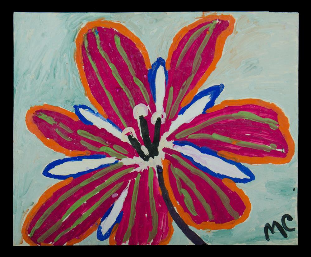 DE CHAZAL, Malcolm (Mauritius 1902-1981) Untitled (Single Red Flower) Provenance: gift from the artist to current owner's late husband; private collection, ACT. Accompanied by signed letter of provenance. Gouache 52x63.5cm Estimate $800-1,500