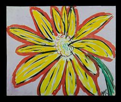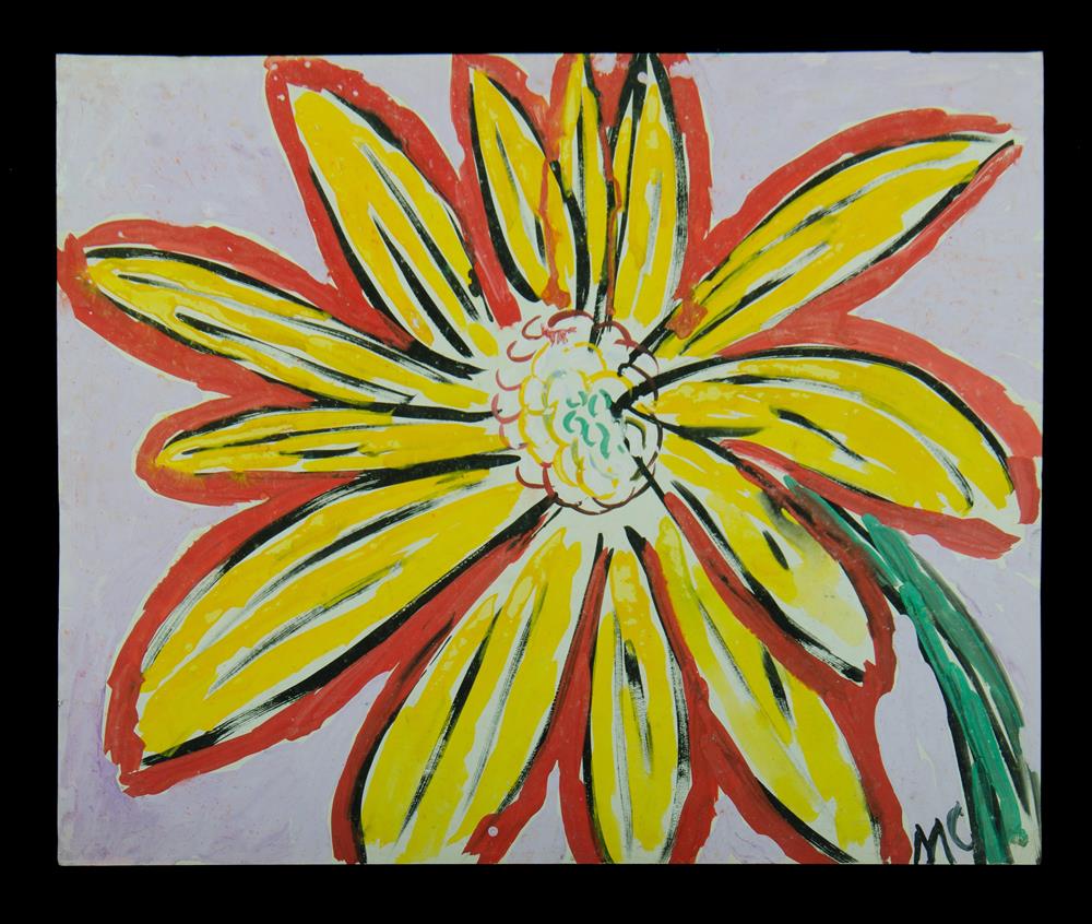 DE CHAZAL, Malcolm (Mauritius 1902-1981) Untitled (Single Yellow Flower) Provenance: gift from the artist to current owner's late husband; private collection, ACT. Accompanied by signed letter of provenance. Gouache 52x63.5cm Estimate $800-1,500