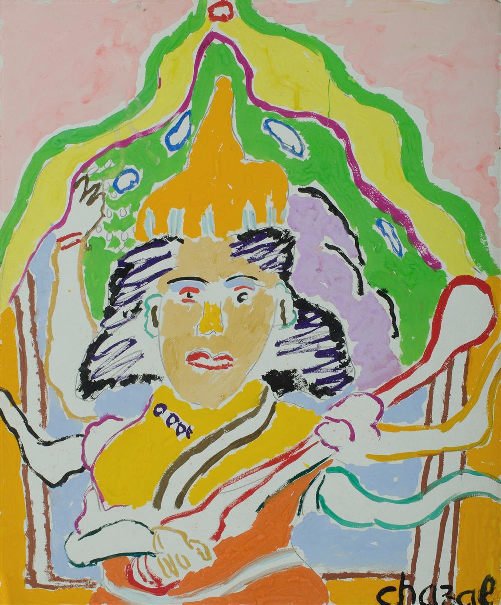 DE CHAZAL, Malcolm (Mauritius 1902-1981) Hindu Goddess Provenance: gift from the artist to current owner's late husband; private collection, ACT. Accompanied by signed letter of provenance. Gouache 63x52cm Estimate $800-1,500