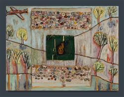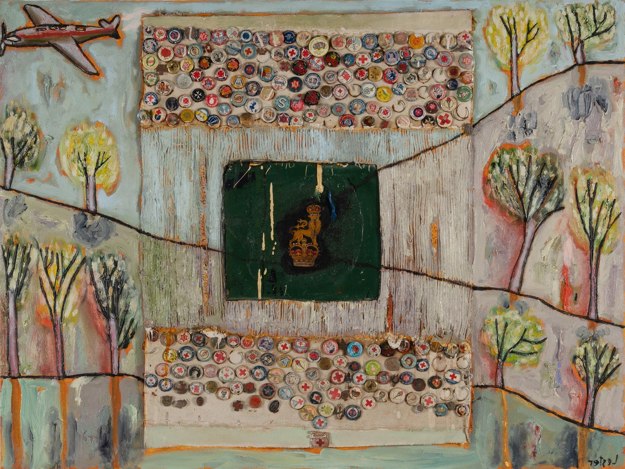 LESTER, Kerrie (1953-2016) 'Lest we forget,' 2012. Ex Australian Galleries (label verso). Oil on Hand-stitched Canvas & Mixed Media 76x101cmEstimate $400-700