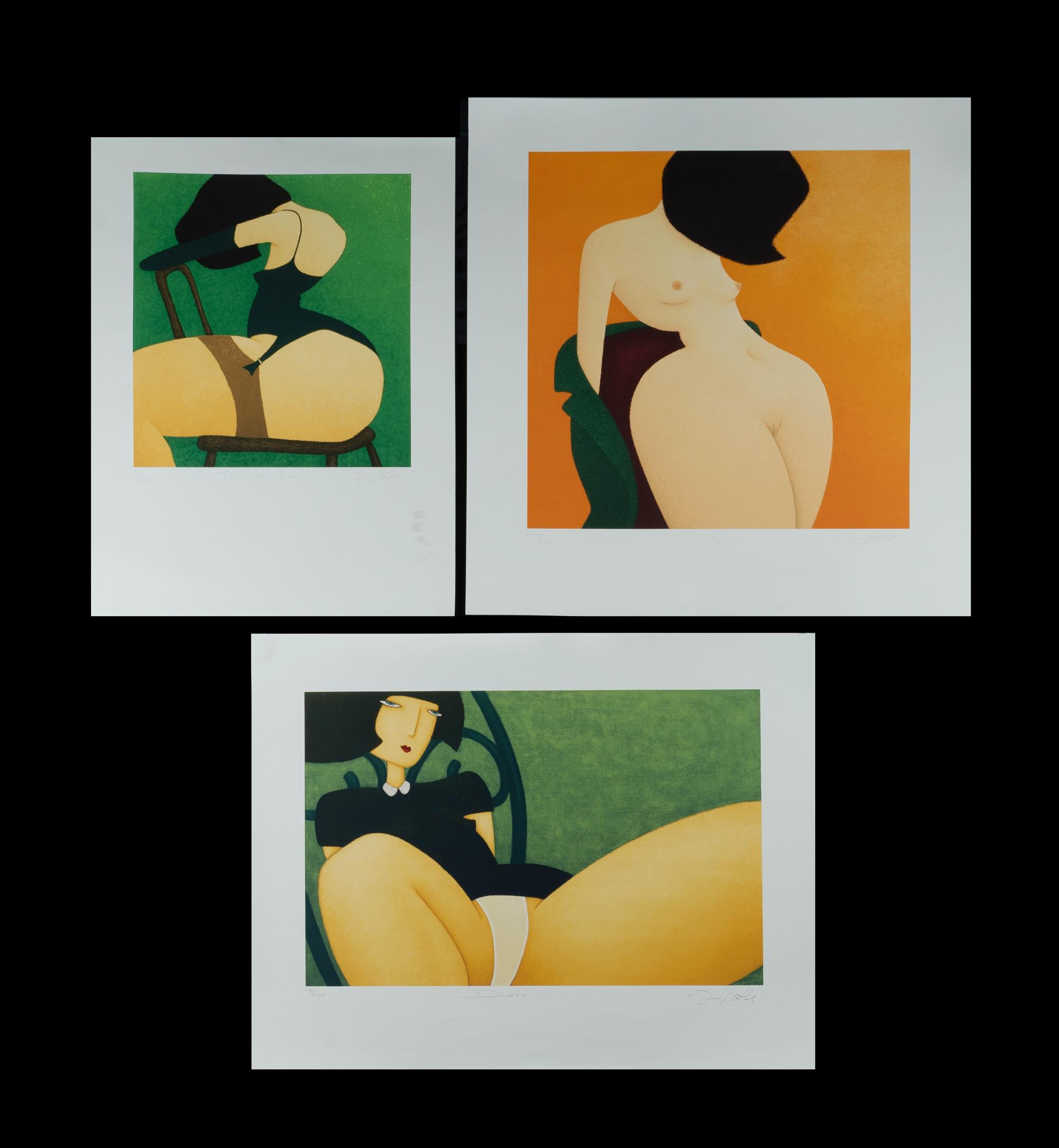 LAITY, David (b.1958) (3) 'The Green Room' (44x42cm), 55/250; 'Dare' (44x68cm), 194/250; & 'Muse' (57x57cm), 211/250. S/Print (3)Estimate $250-450