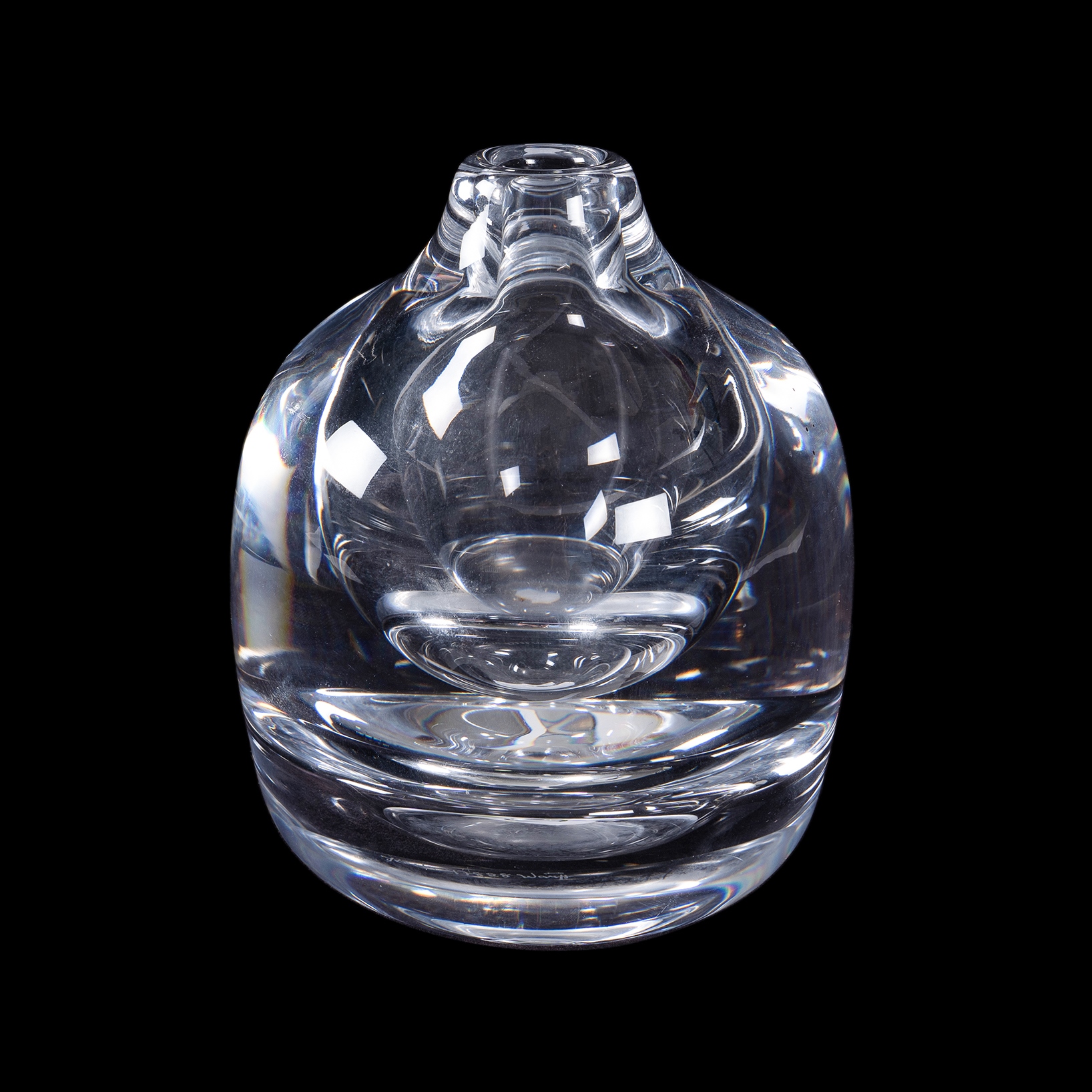 Göran WARFF Kosta Glass Specimen Vase. Squat bulbose vase in clear glass. Engraved signature to base. (H14cm)Estimate $50-100