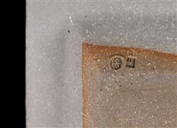 BLAKEBROUGH, Les (b.1930) Square Stoneware Dish Ash & cobalt glaze with shino border lines. Impressed studio seals for Sturt Pottery. Circa 1970s. (25x25cm)Estimate $200-300