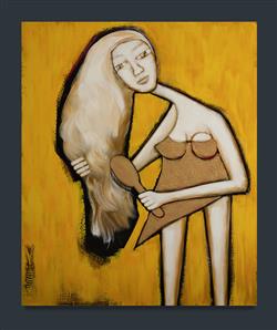RICHARDS, Gordon (b.1953) 'Girl Brushing Hair,' c.2000. Signed verso. Purchased by the current owner in 2000 from Libby Edwards Gallery, Sydney. Acrylic on Canvas 122x102cmEstimate $600-1,000
