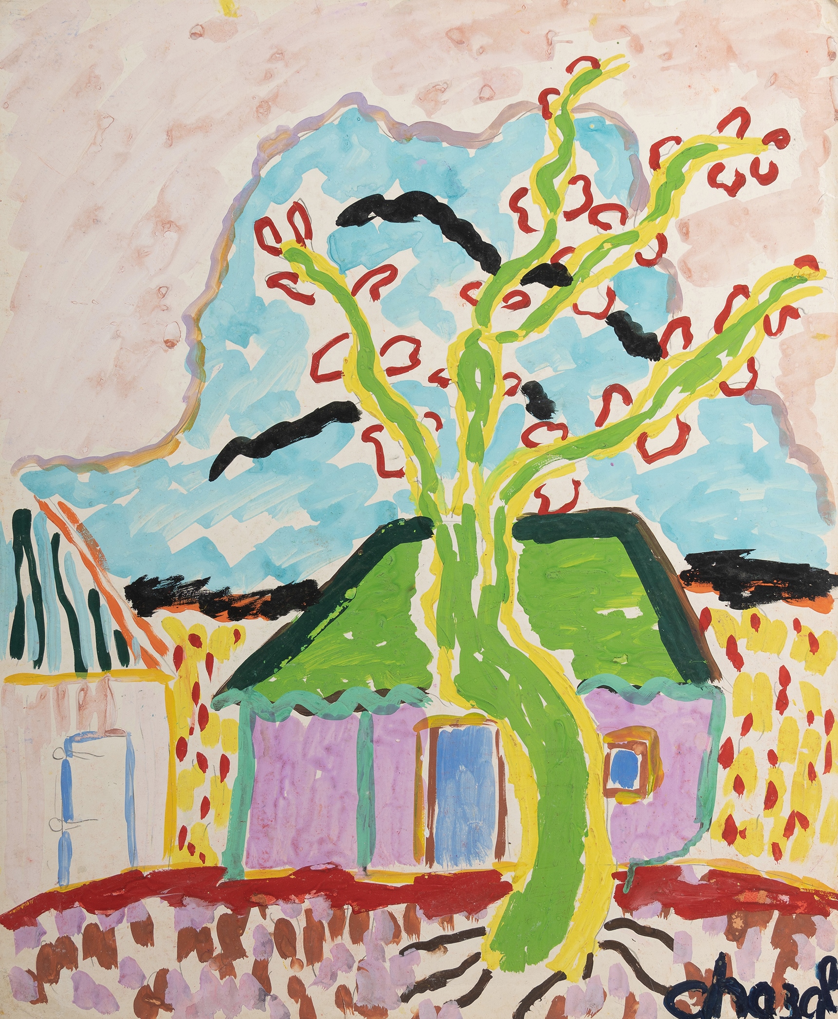 DE CHAZAL, Malcolm (Mauritius 1902-1981) House with the Green Roof Provenance: gift from the artist to current owner's late husband; private collection, ACT. Accompanied by signed letter of provenance. Gouache 63.5x52cmEstimate $1,000-1,500