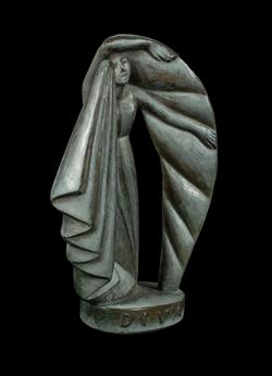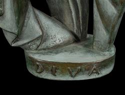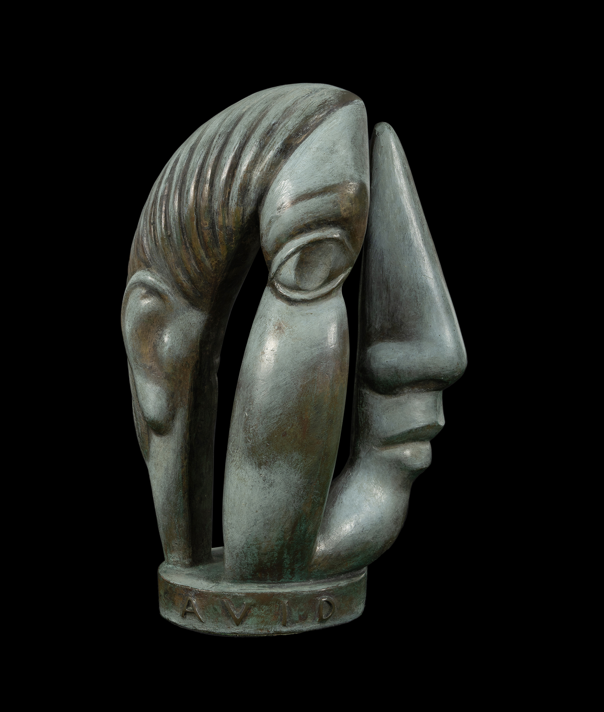 STRINGER, Terry (Britain/New Zealand b.1946) 'Diva Avid' Incised signature, edition number & foundry stamp to base. The sculpture shows a female figure on one side (Diva), & on the reverse side a head in profile (Avid). Grey Patinated Bronze 2/10 H22.5cm