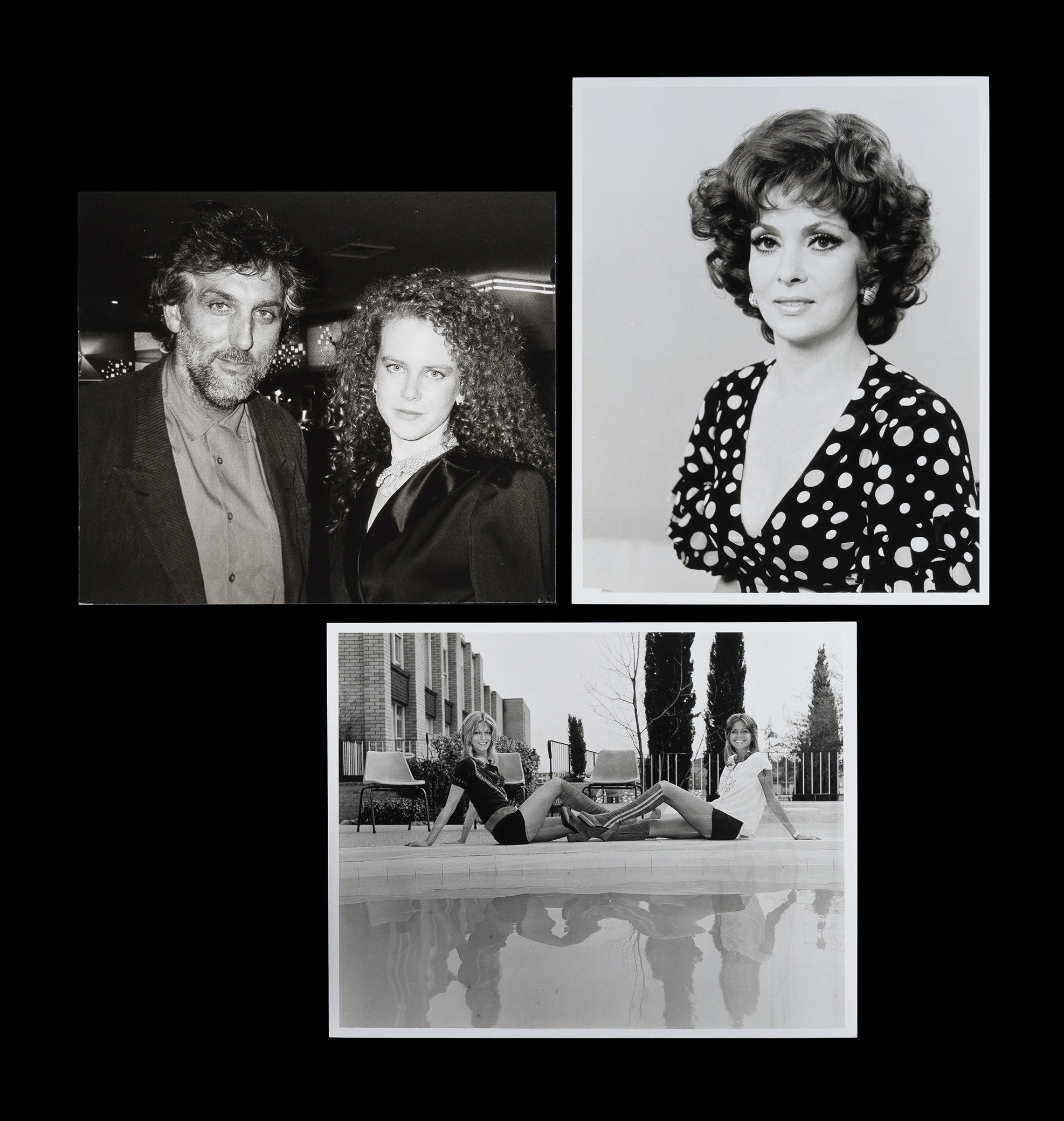 McINERNEY, Brian (3) Olivia Newton-John & Sister Rona, 23x29cm (image); Phillip Noyce & Nicole Kidman c.1989, 24x27.5cm (image); & Gina Lollobrigida, 29x23cm (image). All three inscribed with details verso in another hand. Black & White Photograph (3) Estimate $100-300