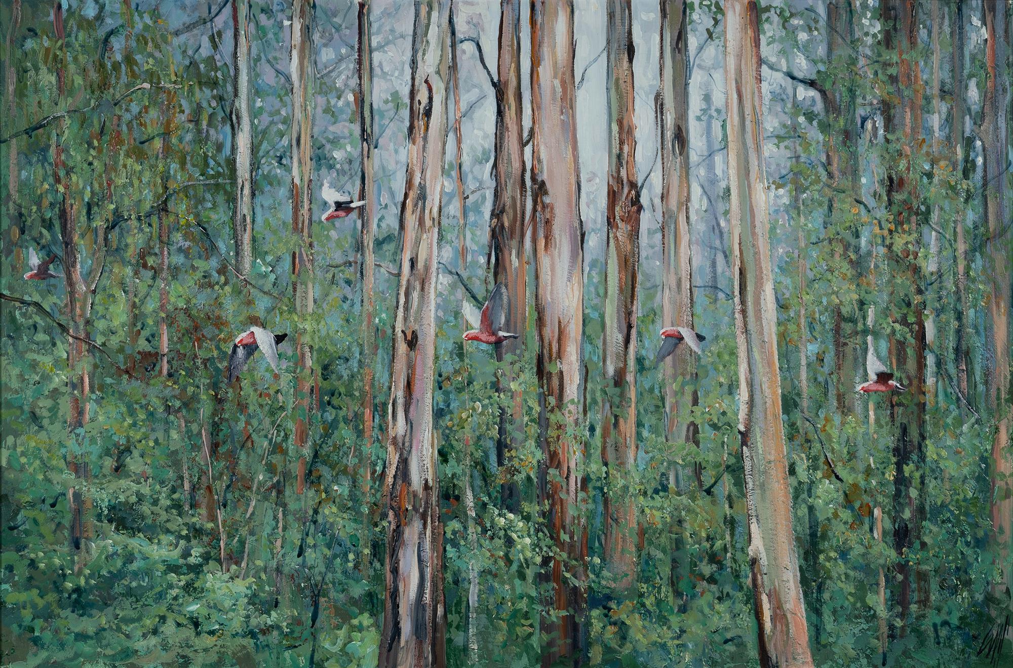 EVANS, Paul (b.1950) 'Eucalypt Forest I,' 1993. Signed lower right; titled verso. Oil on Board 60x90cm PROVENANCE: Private collection, Sydney.Estimate $400-700