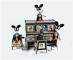 Louis Marx & Co. Lithographed Tinplate Mouse Band. Marx Merrymakers 1920s with animated conductor, pianist, drummer and dancer. Complete, all working. Some scratches but overall good condition. (H25cm) (9E)Estimate $600-1,000