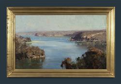 KNIGHT, Ken (b.1956) 'Afternoon Reflections [Middle Harbour, Sydney]' Titled verso, with additional signature. Oil on Board 58.5x98.5cmEstimate $3,500-5,500