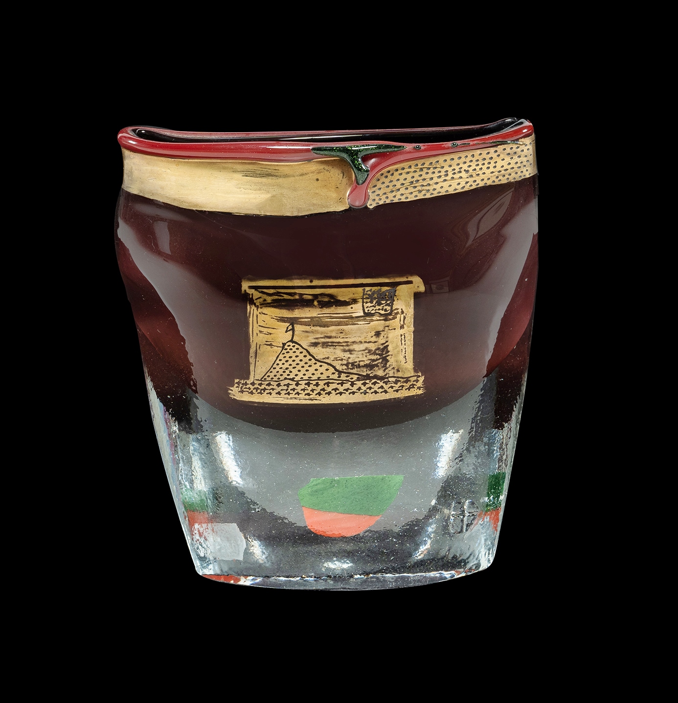 HIRST, Brian (b.1956) 'Guardian' (from the Cycladic Forms series), 1985. Etched signature to base. Enamelled, Gilded & Etched Glass H14.5cmEstimate $200-400